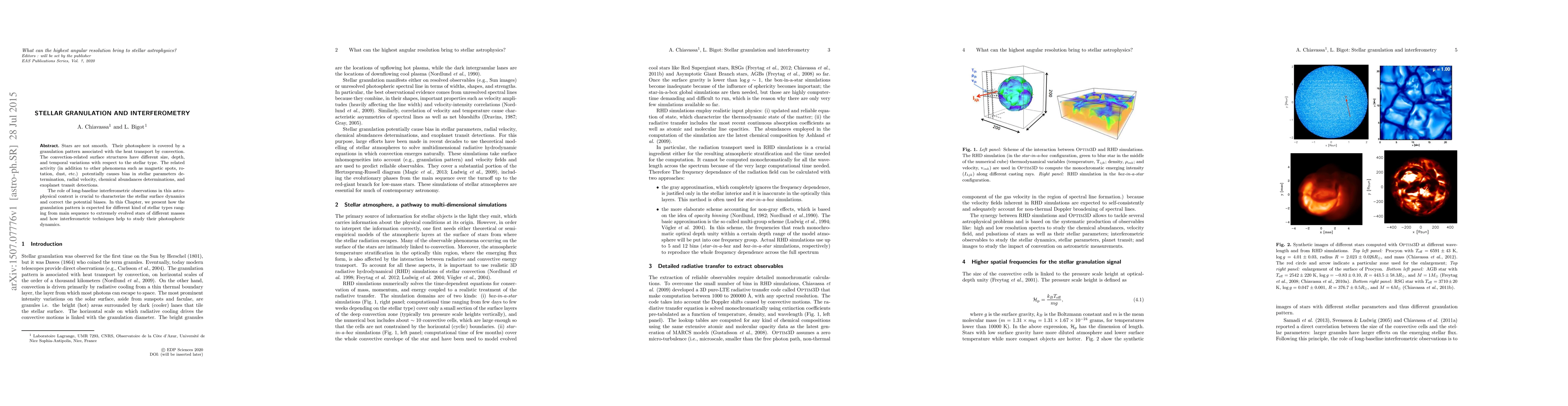 This paper discusses the granulation patterns on stellar photospheres caused by convection, which affect various astrophysical measurements. It highlights the importance of long-baseline interferometry in characterizing these granular patterns and correcting biases in stellar parameters, radial velocity, and exoplanet detections across different stellar types.