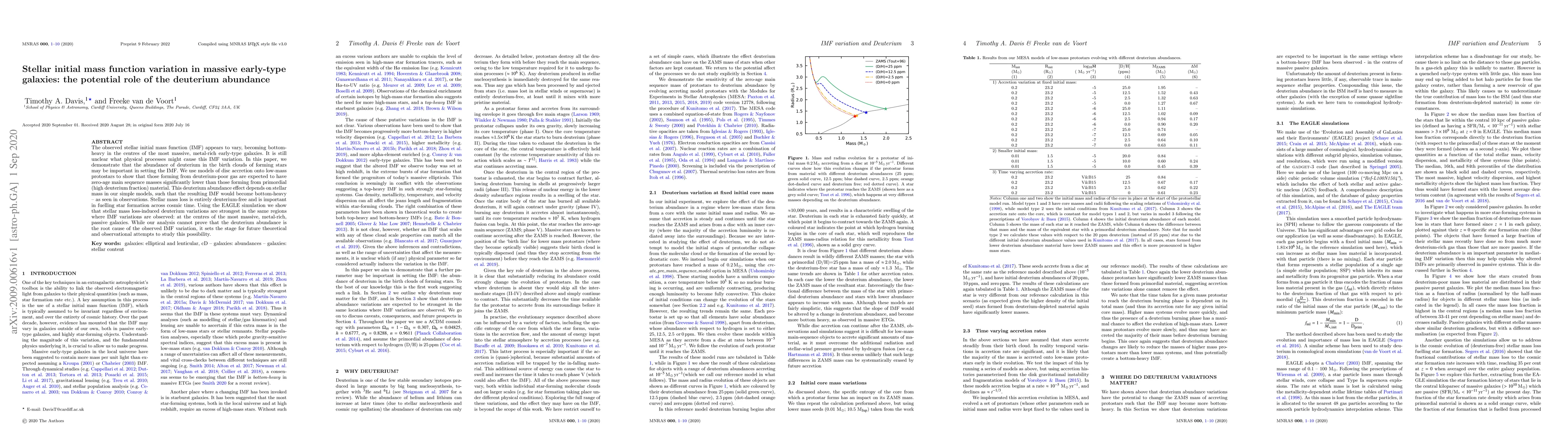 This paper investigates the potential role of deuterium abundance in shaping the stellar initial mass function (IMF) in massive early-type galaxies, suggesting that deuterium-poor birth clouds may lead to a bottom-heavy IMF, as observed in the centres of the most massive, metal-rich galaxies. The study uses models and simulations to propose that deuterium variations, driven by stellar mass loss, could be responsible for the observed IMF variations.