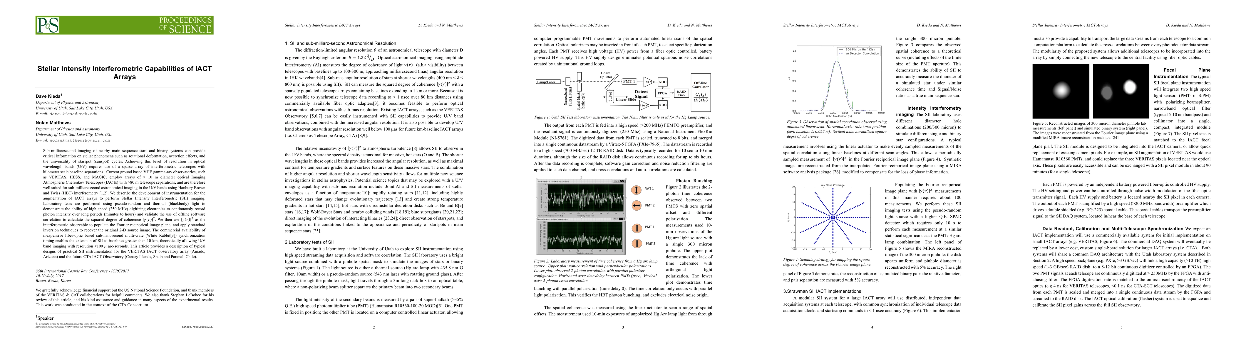 Sub-milliarcsecond imaging of nearby main sequence stars and binary systems can provide critical information on stellar phenomena such as rotational deformation, accretion effects, and the universality of starspot (sunspot) cycles. Achieving this level of resolution in optical wavelength bands (U/V) requires use of a sparse array of interferometric telescopes with kilometer scale baseline separations. Current ground based VHE gamma-ray observatories, such as VERITAS, HESS, and MAGIC, employ arrays of > 10 m diameter optical Imaging Atmospheric Cherenkov Telescopes (IACTs) with >80 m telescope separations, and are therefore well suited for sub-milliarcsecond astronomical imaging in the U/V bands using Hanbury Brown and Twiss (HBT) interferometry [1,2]. We describe the development of instrumentation for the augmentation of IACT arrays to perform Stellar Intensity Interferometric (SII) imaging. Laboratory tests are performed using pseudo-random and thermal (blackbody) light to demonstrate the ability of high speed (250 MHz) digitizing electronics to continuously record photon intensity over long periods (minutes to hours) and validate the use of offline software correlation to calculate the squared degree of coherence . We then use as the interferometric observable to populate the Fourier reciporical image plane, and apply standard inversion techniques to recover the original 2-D source image. The commercial availability of inexpensive fiber-optic based sub-nanosecond multi-crate (White Rabbit[3]) synchronization timing enables the extension of SII to baselines greater than 10 km, theoretically allowing U/V band imaging with resolution <100 $\mu$ arc-seconds. This article provides a description of typical designs of practical SII instrumentation for the VERITAS IACT observatory array (Amado, Arizona) and the future CTA IACT Observatory (Canary Islands, Spain and Paranal, Chile).
