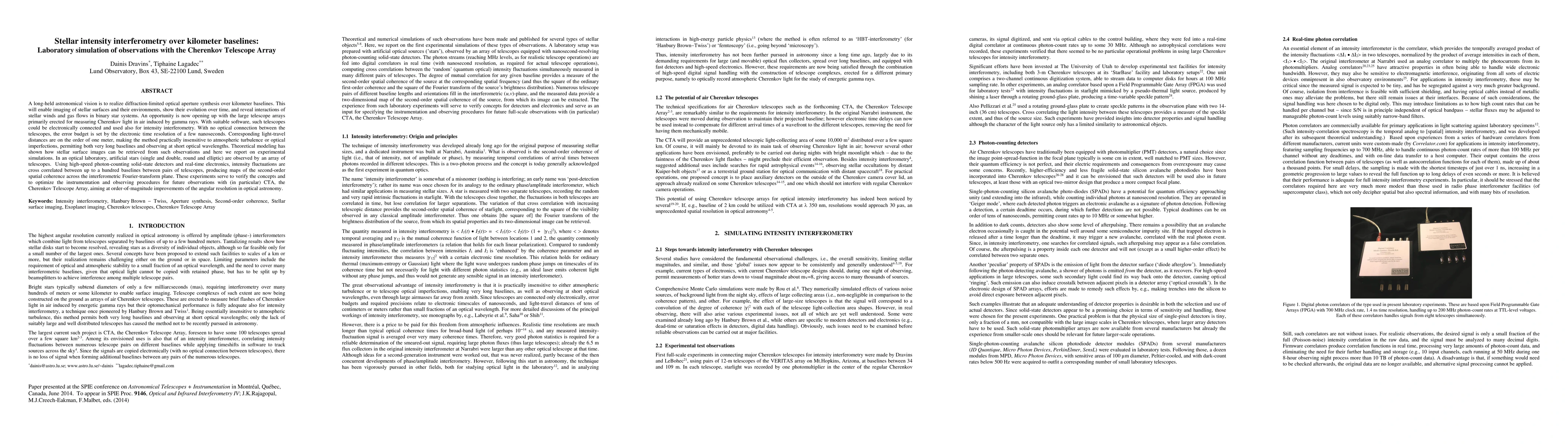 This paper reports on laboratory simulations to test the feasibility of stellar intensity interferometry using the Cherenkov Telescope Array (CTA) over kilometer baselines. The experiments demonstrate the potential of retrieving stellar surface images by cross-correlating intensity fluctuations from multiple telescopes, verifying the concept and optimizing future observational techniques for enhanced optical astronomy resolution.