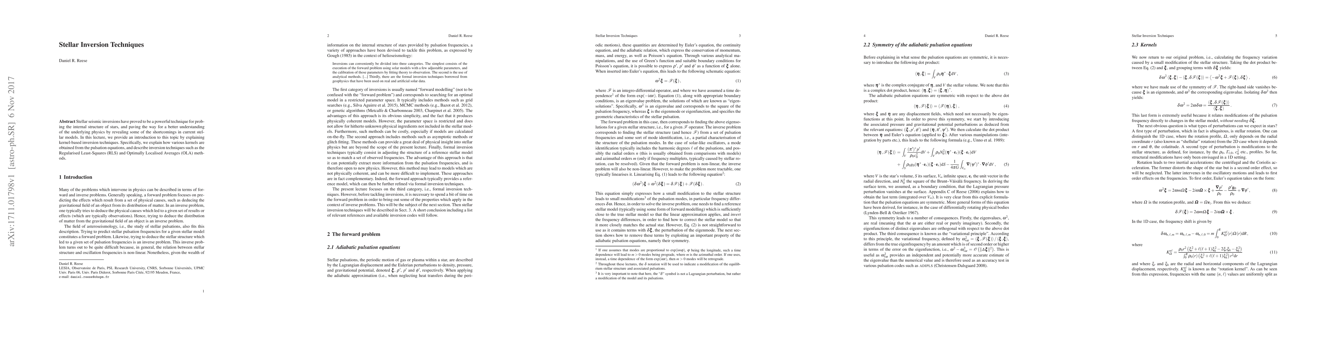 This paper introduces stellar seismic inversion techniques, focusing on kernel-based methods for probing stellar interiors. It explains the Regularised Least-Squares (RLS) and Optimally Localised Averages (OLA) inversion techniques, derived from pulsation equations, to improve current stellar models.