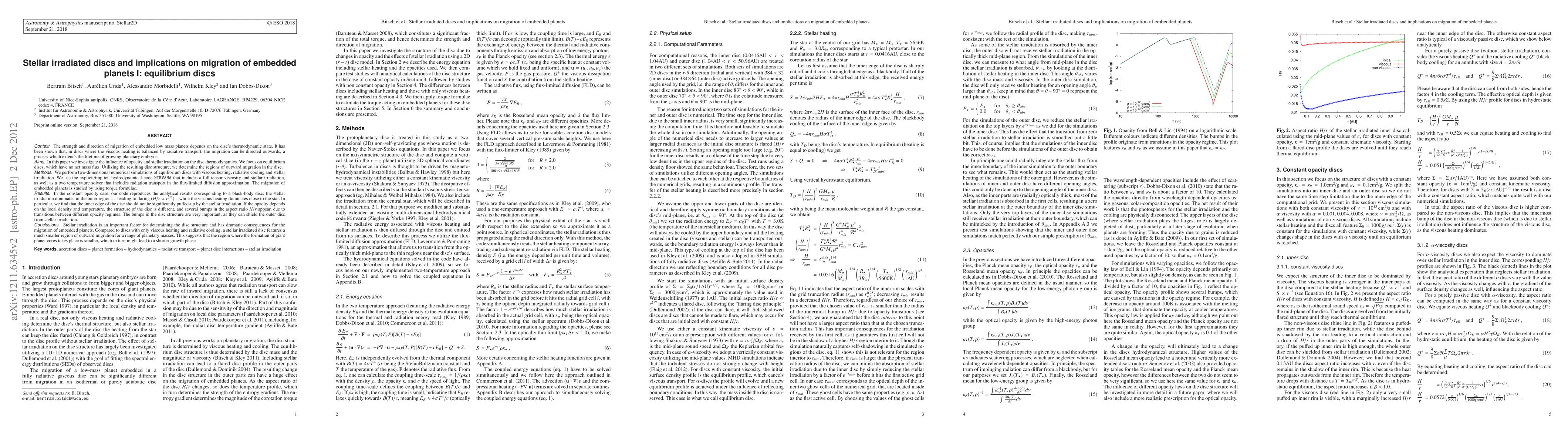 The strength and direction of migration of low mass planets depends on the disc's thermodynamics. In discs where the viscous heating is balanced by radiative transport, the migration can be directed outwards, a process which extends the lifetime of growing planetary embryos. We investigate the influence of opacity and stellar irradiation on the disc thermodynamics. Utilizing the resulting disc structure, we determine the regions of outward migration. We perform two-dimensional numerical simulations of equilibrium discs with viscous heating, radiative cooling and stellar irradiation. We use the hydrodynamical code NIRVANA that includes a full tensor viscosity and stellar irradiation, as well as a two temperature solver that includes radiation transport in the flux-limited diffusion approximation. The migration is studied by using torque formulae. In the constant opacity case, we reproduce the analytical results of a black-body disc: the stellar irradiation dominates in the outer regions -- leading to flaring -- while the viscous heating dominates close to the star. We find that the inner edge of the disc should not be significantly puffed-up by the stellar irradiation. If the opacity depends on the local density and temperature, the structure of the disc is different, and several bumps in the aspect ratio H/r appear, due to transitions between different opacity regimes. The bumps in the disc can shield the outer disc from stellar irradiation. Stellar irradiation is an important factor for determining the disc structure and has dramatic consequences for the migration of embedded planets. Compared to discs with only viscous heating, a stellar irradiated disc features a much smaller region of outward migration for a range of planetary masses. This suggests that the region where the formation of giant planet cores takes place is smaller, which in turn might lead to a shorter growth phase.