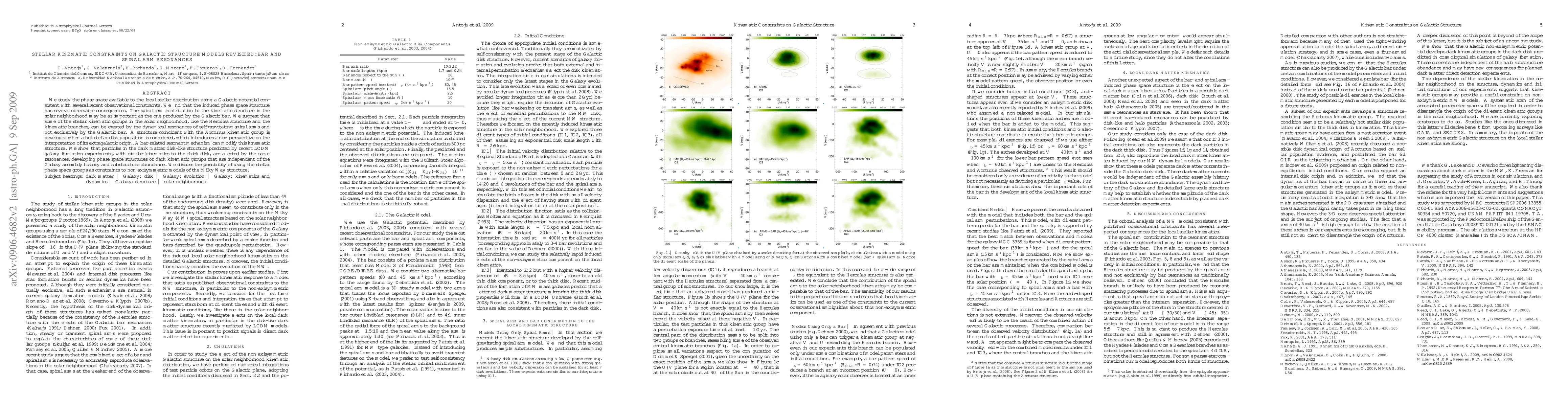 We study the phase space available to the local stellar distribution using a Galactic potential consistent with several recent observational constraints. We find that the induced phase space structure has several observable consequences. The spiral arm contribution to the kinematic structure in the solar neighborhood may be as important as the one produced by the Galactic bar. We suggest that some of the stellar kinematic groups in the solar neighborhood, like the Hercules structure and the kinematic branches, can be created by the dynamical resonances of self-gravitating spiral arms and not exclusively by the Galactic bar. A structure coincident with the Arcturus kinematic group is developed when a hot stellar disk population is considered, which introduces a new perspective on the interpretation of its extragalactic origin. A bar-related resonant mechanism can modify this kinematic structure.We show that particles in the dark matter disk-like structure predicted by recent LCDM galaxy formation experiments, with similar kinematics to the thick disk, are affected by the same resonances, developing phase space structures or dark kinematic groups that are independent of the Galaxy assembly history and substructure abundance. We discuss the possibility of using the stellar phase space groups as constraints to non-axisymmetric models of the Milky Way structure.