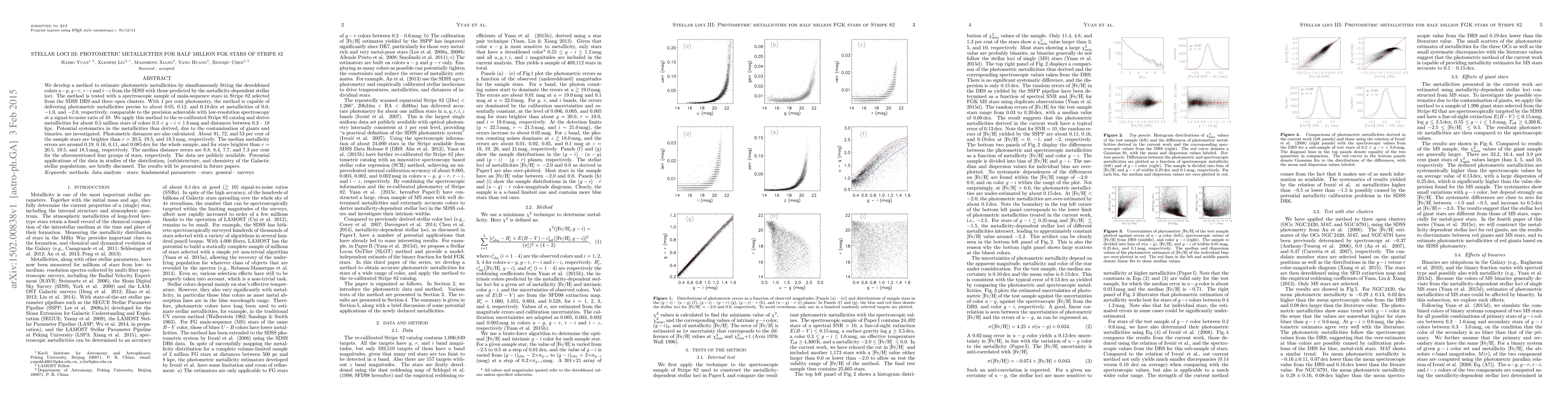 This paper develops a method to estimate photometric metallicities for half a million FGK stars in Stripe 82 using SDSS data, achieving precision comparable to low-resolution spectroscopy. The method is tested on spectroscopic samples and applied to derive metallicities and photometric distances for the stars, with potential systematics and errors discussed.