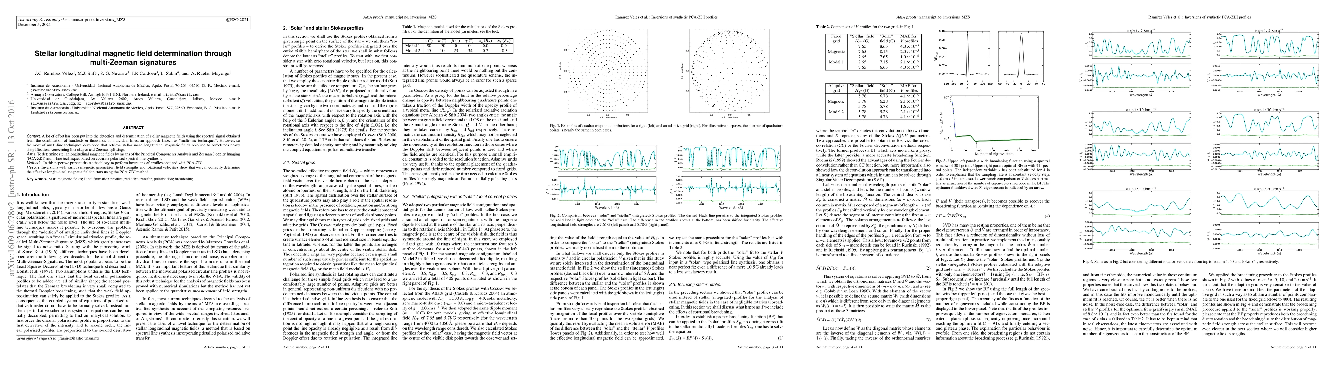 Context. A lot of effort has been put into the detection and determination of stellar magnetic fields using the spectral signal obtained from the combination of hundreds or thousands of individual lines, an approach known as multi-line techniques. However, so far most of multi-line techniques developed that retrieve stellar mean longitudinal magnetic fields recourse to sometimes heavy simplifications concerning line shapes and Zeeman splittings. Aims. To determine stellar longitudinal magnetic fields by means of the Principal Components Analysis and Zeeman Doppler Imaging (PCA-ZDI) multi-line technique, based on accurate polarised spectral line synthesis. Methods. In this paper we present the methodology to perform inversions of profiles obtained with PCA-ZDI. Results. Inversions with various magnetic geometries, field strengths and rotational velocities show that we can correctly determine the effective longitudinal magnetic field in stars using the PCA-ZDI method.