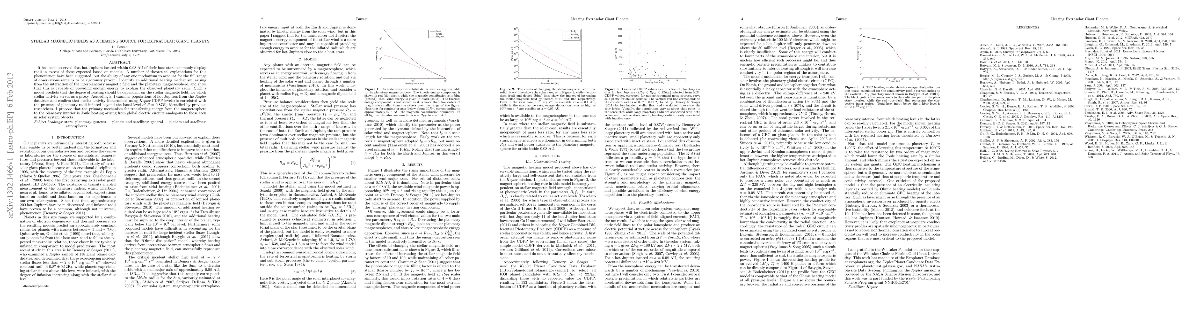 It has been observed that hot Jupiters located within 0.08 AU of their host stars commonly display radii in excess of those expected based on models. A number of theoretical explanations for this phenomenon have been suggested, but the ability of any one mechanism to account for the full range of observations remains to be rigorously proven. I identify an additional heating mechanism, arising from the interaction of the interplanetary magnetic field and the planetary magnetosphere, and show that this is capable of providing enough energy to explain the observed planetary radii. Such a model predicts that the degree of heating should be dependent on the stellar magnetic field, for which stellar activity serves as a proxy. Accordingly, I examine populations of hot Jupiters from the Kepler database and confirm that stellar activity (determined using Kepler CDPP levels) is correlated with the presence of planetary radii inflated beyond the basal level of R = 0.87 R_J identified by previous researchers. I propose that the primary mechanism for transferring energy from the magnetosphere to the planetary interior is Joule heating arising from global electric circuits analogous to those seen in solar system objects.