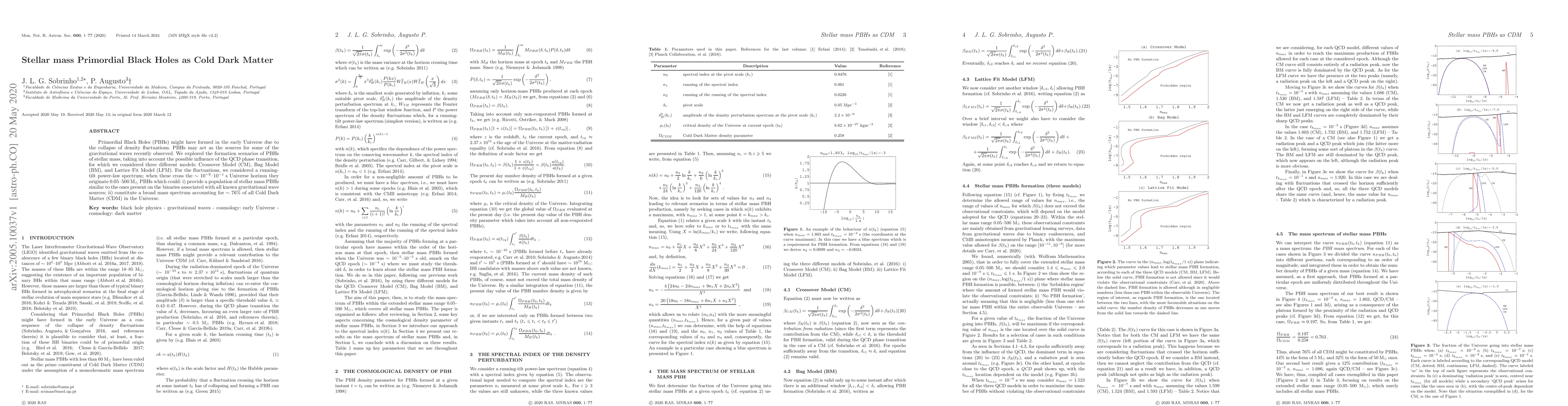Primordial Black Holes (PBHs) might have formed in the early Universe due to the collapse of density fluctuations. PBHs may act as the sources for some of the gravitational waves recently observed. We explored the formation scenarios of PBHs of stellar mass, taking into account the possible influence of the QCD phase transition, for which we considered three different models: Crossover Model (CM), Bag Model (BM), and Lattice Fit Model (LFM). For the fluctuations, we considered a running-tilt power-law spectrum; when these cross the $\sim 10^{-9}$-$10^{-1}\mathrm{~s}$ Universe horizon they originate 0.05-500~M$_{\odot}$ PBHs which could: i) provide a population of stellar mass PBHs similar to the ones present on the binaries associated with all known gravitational wave sources; ii) constitute a broad mass spectrum accounting for $\sim 76\%$ of all Cold Dark Matter (CDM) in the Universe.