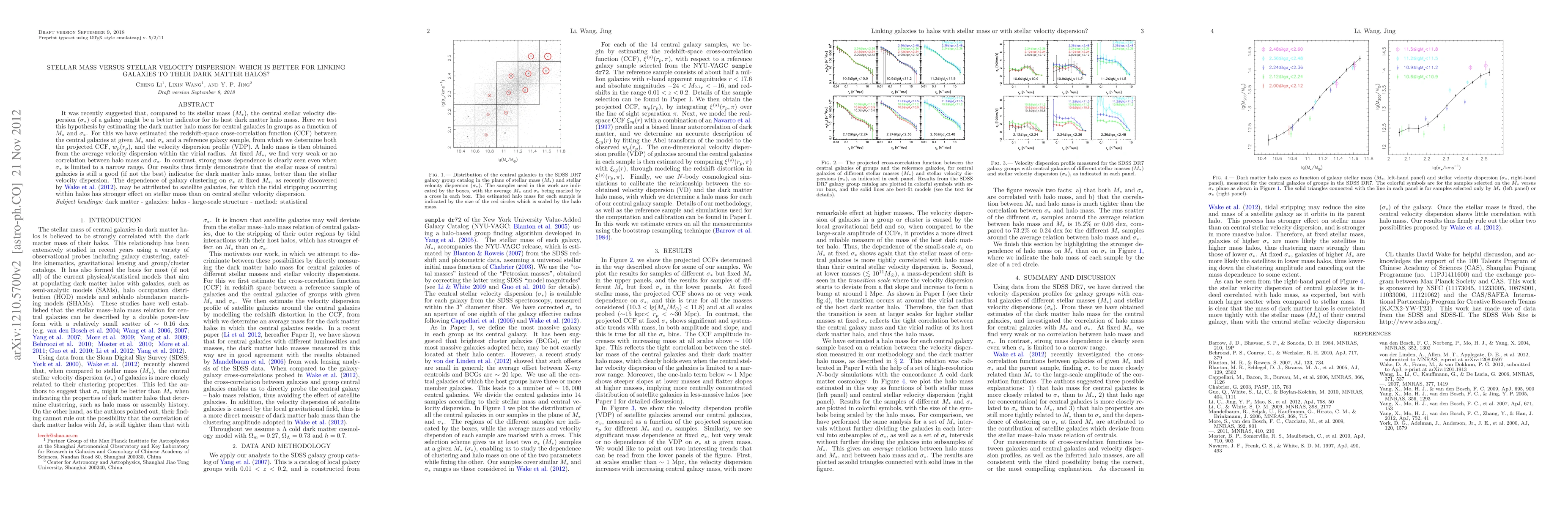This study finds that stellar mass (M*) is a better indicator of a galaxy's dark matter halo mass compared to stellar velocity dispersion (sigma*), showing strong mass dependence while sigma* exhibits weak or no correlation. The findings suggest that the previously observed dependence on sigma* may be due to satellite galaxies affected by tidal stripping.