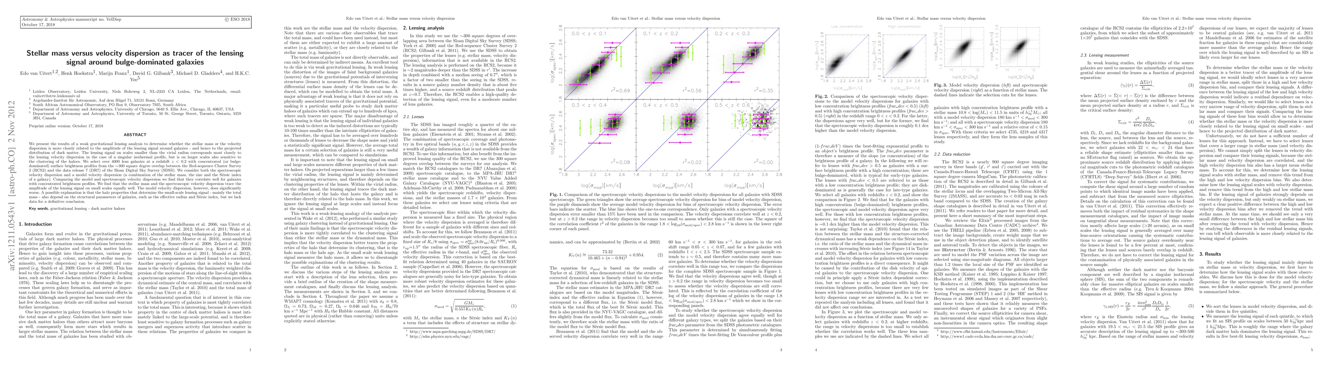 We present the results of a weak gravitational lensing analysis to determine whether the stellar mass or the velocity dispersion is more closely related to the amplitude of the lensing signal around galaxies - and hence to the projected distribution of dark matter. The lensing signal on scales smaller than the virial radius corresponds most closely to the lensing velocity dispersion in the case of a singular isothermal profile, but is on larger scales also sensitive to the clustering of the haloes. We select over 4000 lens galaxies at a redshift z<0.2 with concentrated (or bulge-dominated) surface brightness profiles from the ~300 square degree overlap between the Red-sequence Cluster Survey 2 (RCS2) and the data release 7 (DR7) of the Sloan Digital Sky Survey (SDSS). We consider both the spectroscopic velocity dispersion and a model velocity dispersion (a combination of the stellar mass, the size and the Sersic index of a galaxy). Comparing the model and spectroscopic velocity dispersion we find that they correlate well for galaxies with concentrated brightness profiles. We find that the stellar mass and the spectroscopic velocity dispersion trace the amplitude of the lensing signal on small scales equally well. The model velocity dispersion, however, does significantly worse. A possible explanation is that the halo properties that determine the small-scale lensing signal - mainly the total mass - also depend on the structural parameters of galaxies, such as the effective radius and Sersic index, but we lack data for a definitive conclusion.