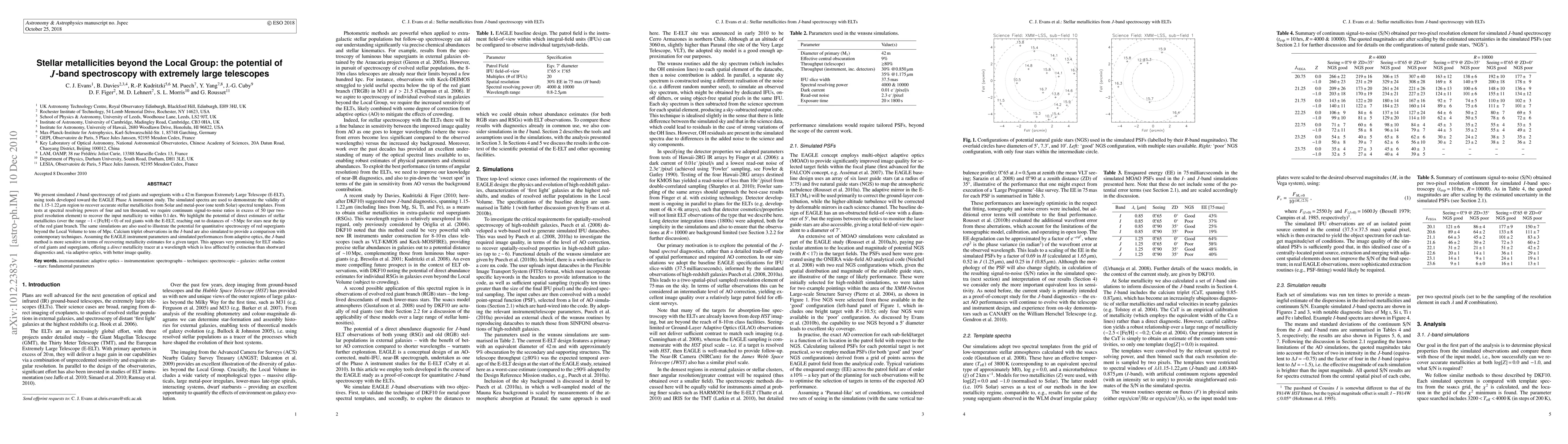 This paper demonstrates the potential of J-band spectroscopy with the European Extremely Large Telescope (E-ELT) to accurately recover stellar metallicities from red giants and supergiants, achieving high signal-to-noise ratios. The J-band method shows superior sensitivity compared to I-band calcium triplet observations, promising direct metallicity measurements over vast distances, unaffected by extinction.