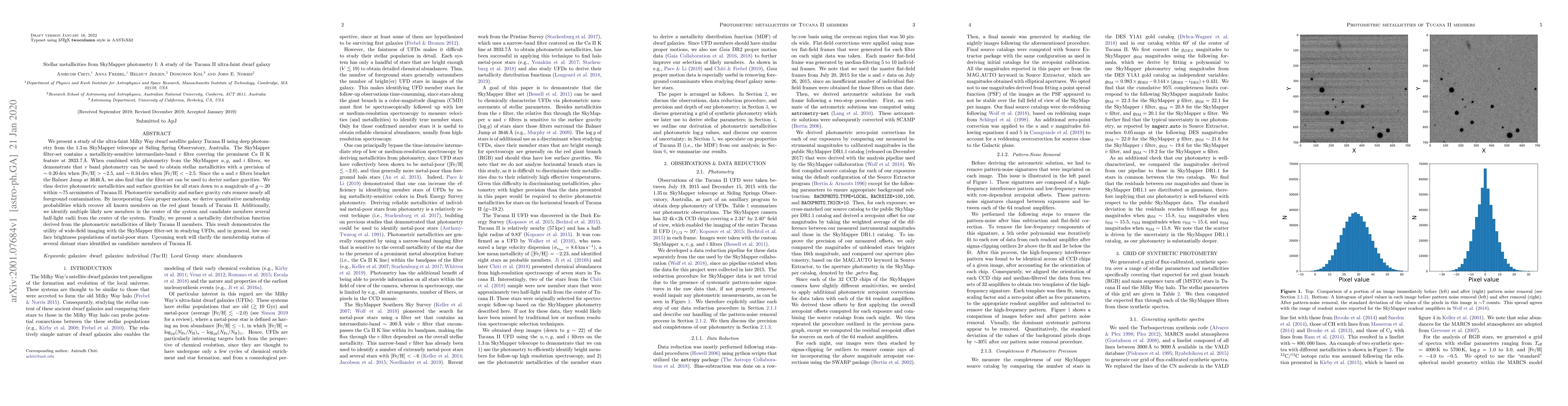 This paper uses SkyMapper telescope photometry to study the ultra-faint dwarf galaxy Tucana II, deriving stellar metallicities and surface gravities with precision. It identifies new likely members and presents a metallicity distribution function, showcasing the effectiveness of SkyMapper's filter-set for studying low-surface-brightness, metal-poor populations.