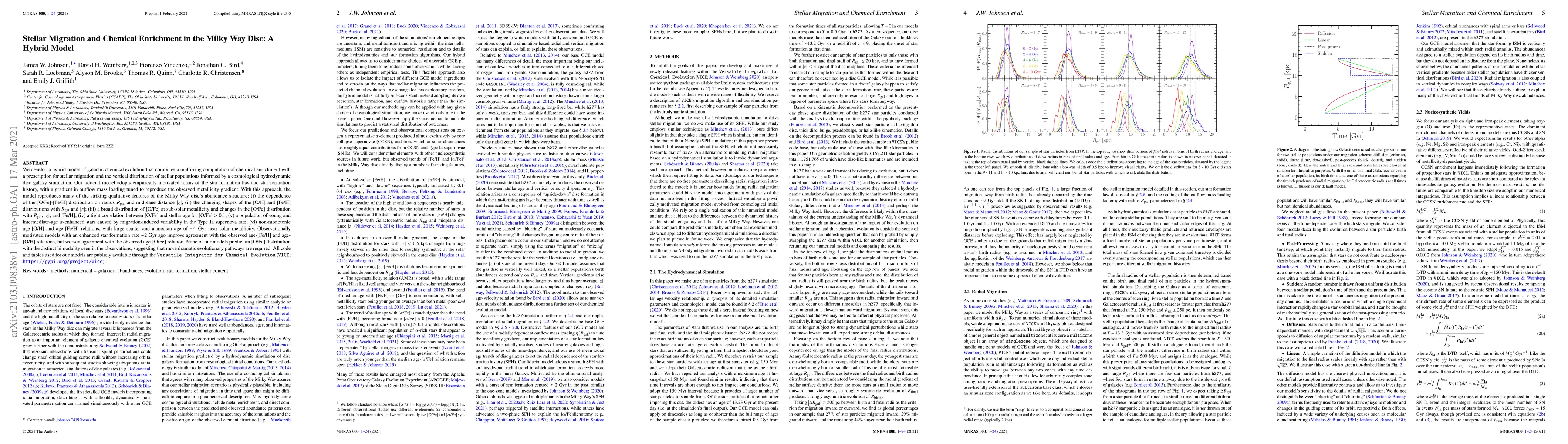 This paper presents a hybrid galactic chemical evolution model that integrates stellar migration and chemical enrichment, informed by a cosmological simulation. The model successfully reproduces several key features of the Milky Way's abundance structure, including metallicity gradients and age-metallicity relations, but falls short in predicting the observed bimodal [O/Fe] distribution.