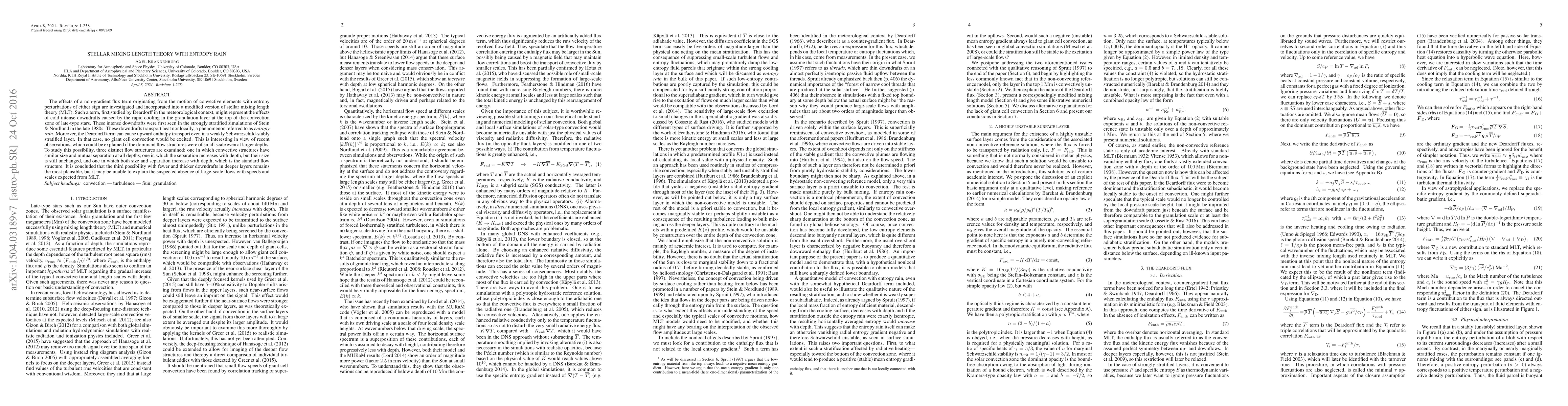 This paper modifies stellar mixing length theory (MLT) by incorporating a non-gradient flux term from convective elements with entropy perturbations, representing phenomena like 'entropy rain' in late-type stars. The study examines three flow structures and concludes that smaller, thicker downdrafts in deeper layers are plausible, though may not explain the absence of large-scale flows as expected by MLT.
