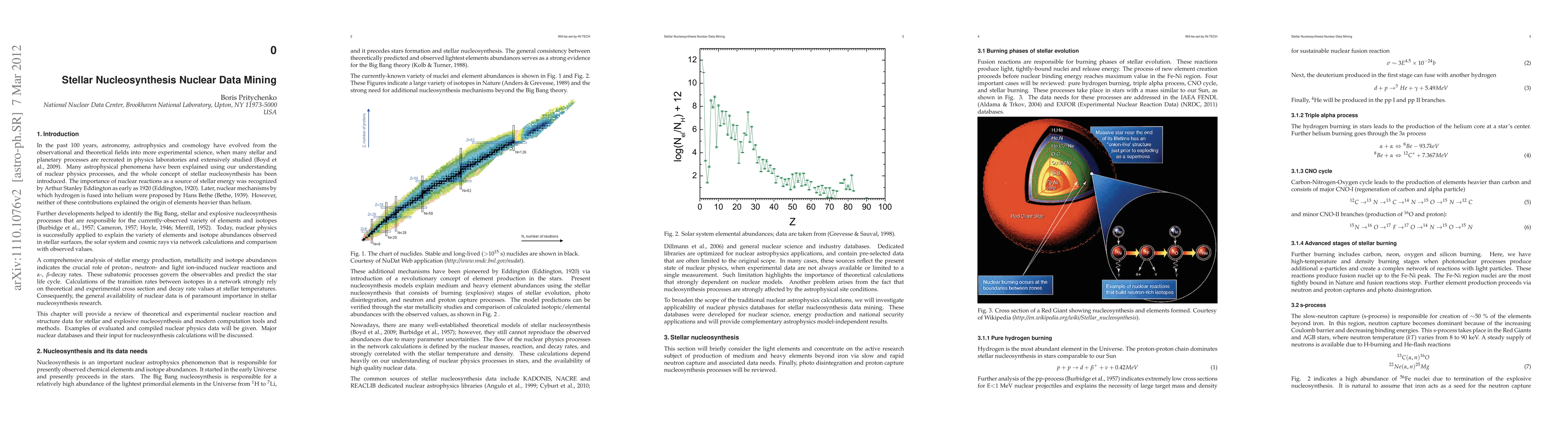Stellar nucleosynthesis is an important nuclear physics phenomenon that is responsible for presently observed chemical elements and isotope abundances. It is also one of the corner stone hypotheses that provides basis for our understanding of Nature. Its theoretical predictions are often verified through the astrophysical observation and comparison of calculated isotopic abundances with the observed values. These calculations depend heavily on the availability of nuclear reaction rate, cross section and decay data. In this work, we will provide a review of theoretical and experimental nuclear reaction data for Big Bang, stellar and explosive nucleosynthesis and modern computer tools. Examples of evaluated and compiled nuclear reaction data will be given. Major databases and their input in nuclear reaction calculations will be discussed.