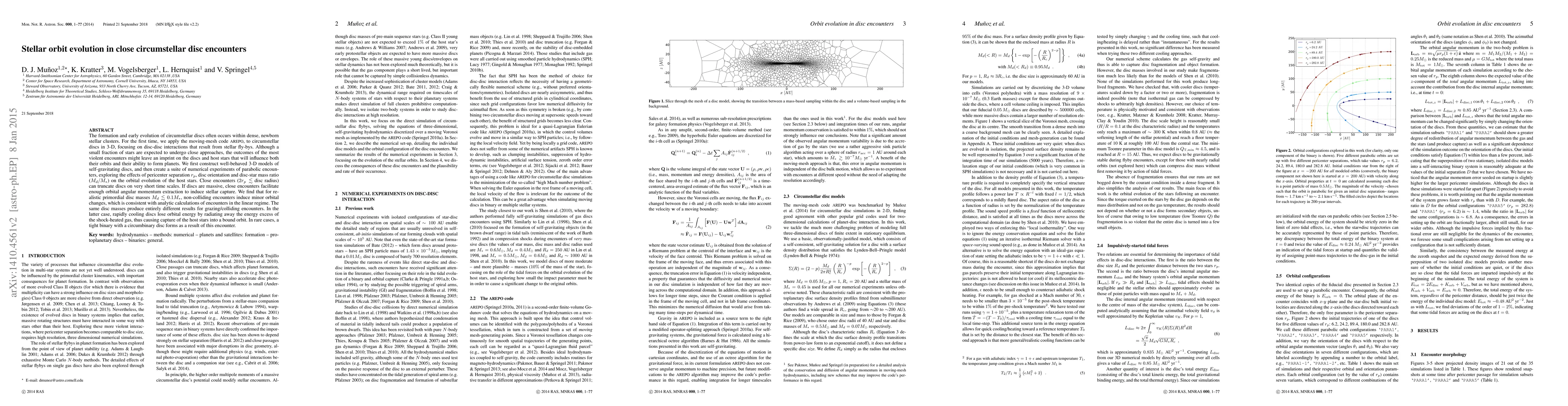 The formation and early evolution of circumstellar discs often occurs within dense, newborn stellar clusters. For the first time, we apply the moving-mesh code AREPO, to circumstellar discs in 3-D, focusing on disc-disc interactions that result from stellar fly-bys. Although a small fraction of stars are expected to undergo close approaches, the outcomes of the most violent encounters might leave an imprint on the discs and host stars that will influence both their orbits and their ability to form planets. We first construct well-behaved 3-D models of self-gravitating discs, and then create a suite of numerical experiments of parabolic encounters, exploring the effects of pericenter separation r_p, disc orientation and disc-star mass ratio (M_d/M_*) on the orbital evolution of the host stars. Close encounters (2r_p<~ disc radius) can truncate discs on very short time scales. If discs are massive, close encounters facilitate enough orbital angular momentum extraction to induce stellar capture. We find that for realistic primordial disc masses M_d<~0.1M_*, non-colliding encounters induce minor orbital changes, which is consistent with analytic calculations of encounters in the linear regime. The same disc masses produce entirely different results for grazing/colliding encounters. In the latter case, rapidly cooling discs lose orbital energy by radiating away the energy excess of the shock-heated gas, thus causing capture of the host stars into a bound orbit. In rare cases, a tight binary with a circumbinary disc forms as a result of this encounter.