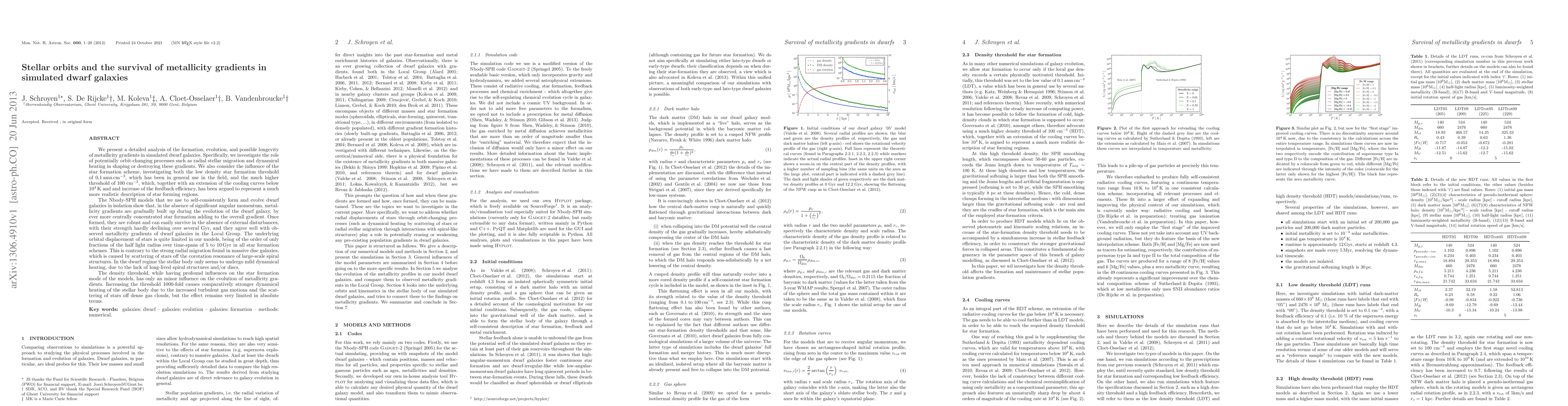 This paper investigates the formation and longevity of metallicity gradients in simulated dwarf galaxies, finding that they are robust and persist over billions of years due to central star formation. The study shows that stellar orbits experience minimal displacement, contrasting with the strong radial migration seen in massive galaxies, and that while star formation density thresholds influence star formation modes, they have a minor effect on metallicity gradients.