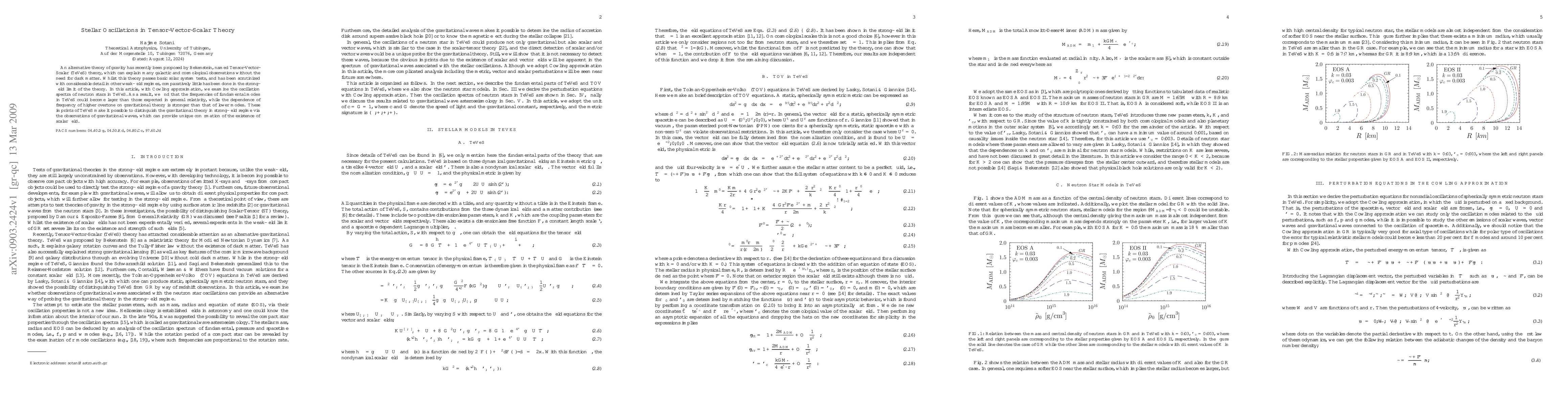 This paper investigates neutron star oscillations within Bekenstein's Tensor-Vector-Scalar (TeVeS) theory, finding that fundamental mode frequencies may exceed those predicted by general relativity. The study suggests that TeVeS could be distinguished from general relativity through gravitational wave observations, offering a unique confirmation of the scalar field's existence.