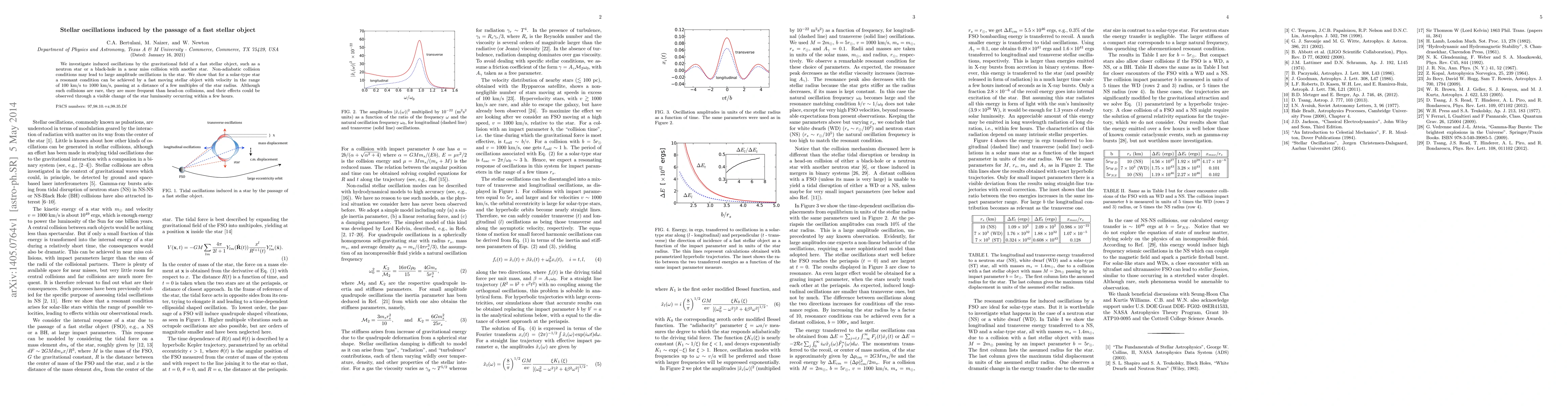 We investigate induced oscillations by the gravitational field of a fast stellar object, such as a neutron star or a black-hole in a near miss collision with another star. Non-adiabatic collision conditions may lead to large amplitude oscillations in the star. We show that for a solar-type star a resonant condition can be achieved by a fast moving stellar object with velocity in the range of 100 km/s to 1000 km/s, passing at a distance of a few multiples of the star radius. Although such collisions are rare, they are more frequent than head-on collisions, and their effects could be observed through a visible change of the star luminosity occurring within a few hours.