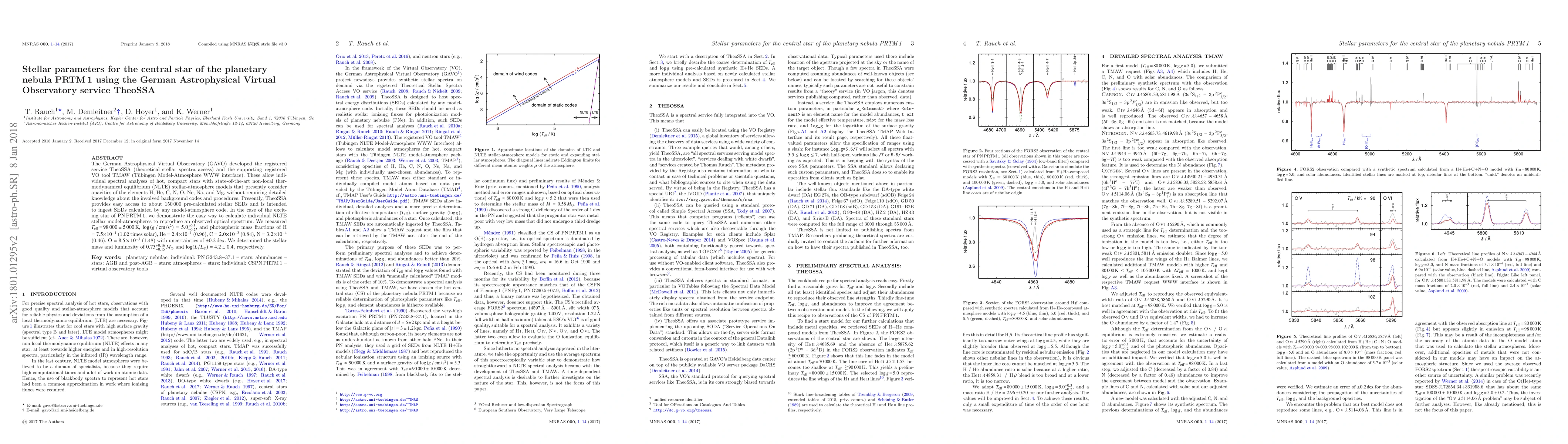 Researchers used a German virtual observatory service to analyze the central star of planetary nebula PRTM 1, determining its temperature, mass, and luminosity with high accuracy.