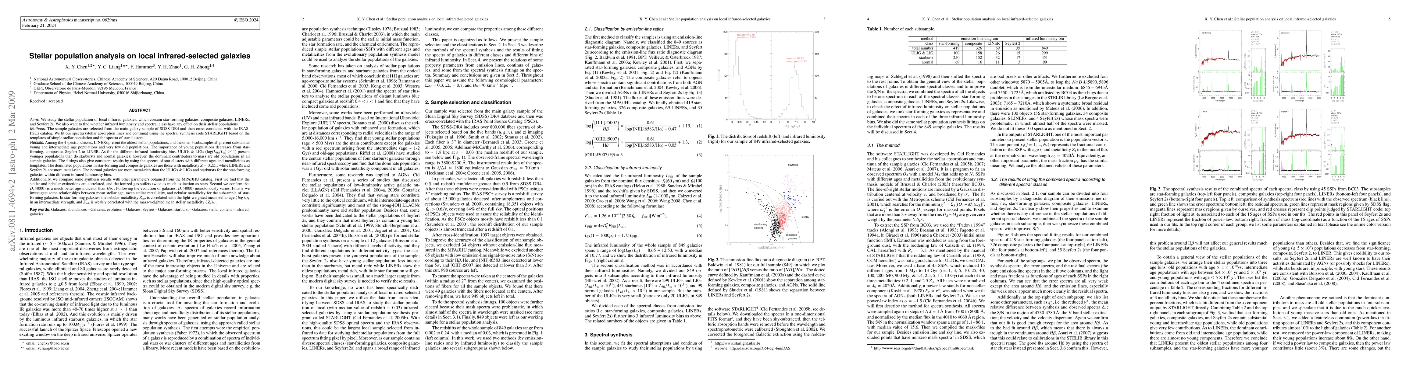 This paper analyzes the stellar populations of local infrared-selected galaxies using spectral synthesis, finding that LINERs have the oldest stellar populations while star-forming, composite, and Seyfert 2 galaxies contain substantial young and intermediate age populations. Higher infrared luminosity correlates with younger stellar populations.