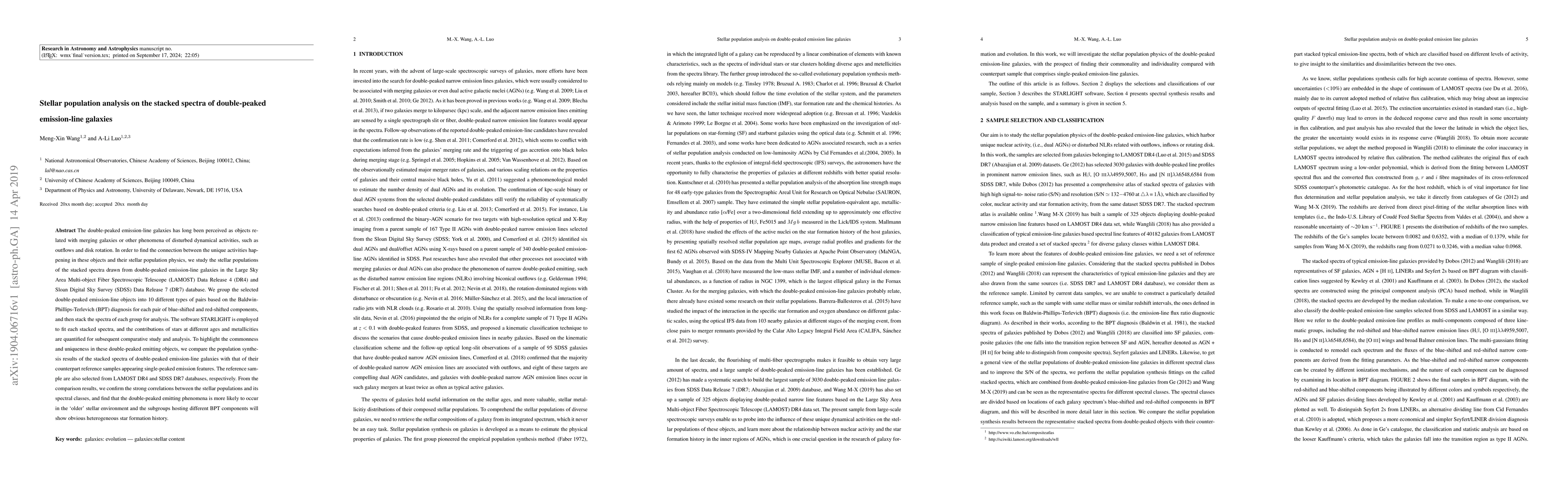 This paper analyzes the stellar populations of double-peaked emission-line galaxies using stacked spectra from LAMOST and SDSS databases. It finds strong correlations between stellar populations and spectral classes, indicating that double-peaked emission is more common in older stellar environments with diverse star formation histories.