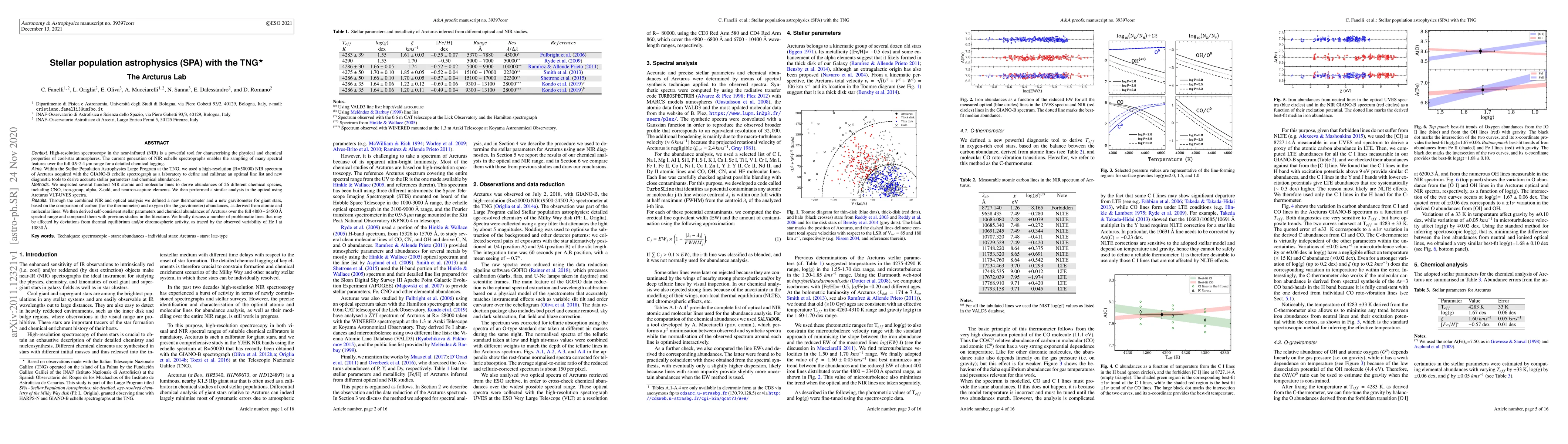 Context. High-resolution spectroscopy in the near-infrared (NIR) is a powerful tool for characterising the physical and chemical properties of cool-star atmospheres. The current generation of NIR echelle spectrographs enables the sampling of many spectral features over the full 0.9-2.4 {\mu}m range for a detailed chemical tagging. Aims. Within the Stellar Population Astrophysics Large Program at the TNG, we used a high-resolution (R=50000) NIR spectrum of Arcturus acquired with the GIANO-B echelle spectrograph as a laboratory to define and calibrate an optimal line list and new diagnostic tools to derive accurate stellar parameters and chemical abundances. Methods. We inspected several hundred NIR atomic and molecular lines to derive abundances of 26 different chemical species, including CNO, iron-group, alpha, Z-odd, and neutron-capture elements. We then performed a similar analysis in the optical using Arcturus VLT-UVES spectra. Results. Through the combined NIR and optical analysis we defined a new thermometer and a new gravitometer for giant stars, based on the comparison of carbon (for the thermometer) and oxygen (for the gravitometer) abundances, as derived from atomic and molecular lines. We then derived self-consistent stellar parameters and chemical abundances of Arcturus over the full 4800 - 24500 {\AA} spectral range and compared them with previous studies in the literature. We finally discuss a number of problematic lines that may be affected by deviations from thermal equilibrium and/or chromospheric activity, as traced by the observed variability of He I at 10830 {\AA}.