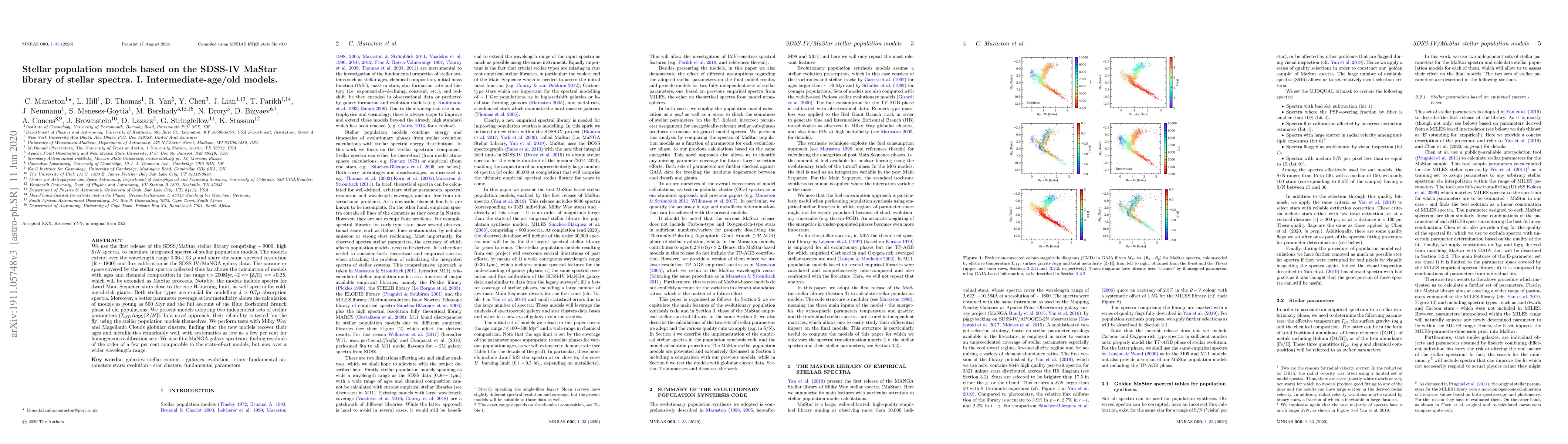 This paper presents new stellar population models based on the SDSS-IV MaStar library, covering intermediate-age/old stellar populations with ages ranging from 200 Myr to old ages, and metallicities from -2 to +0.35. The models are tested against globular clusters and MaNGA galaxies, showing high accuracy and reliability.
