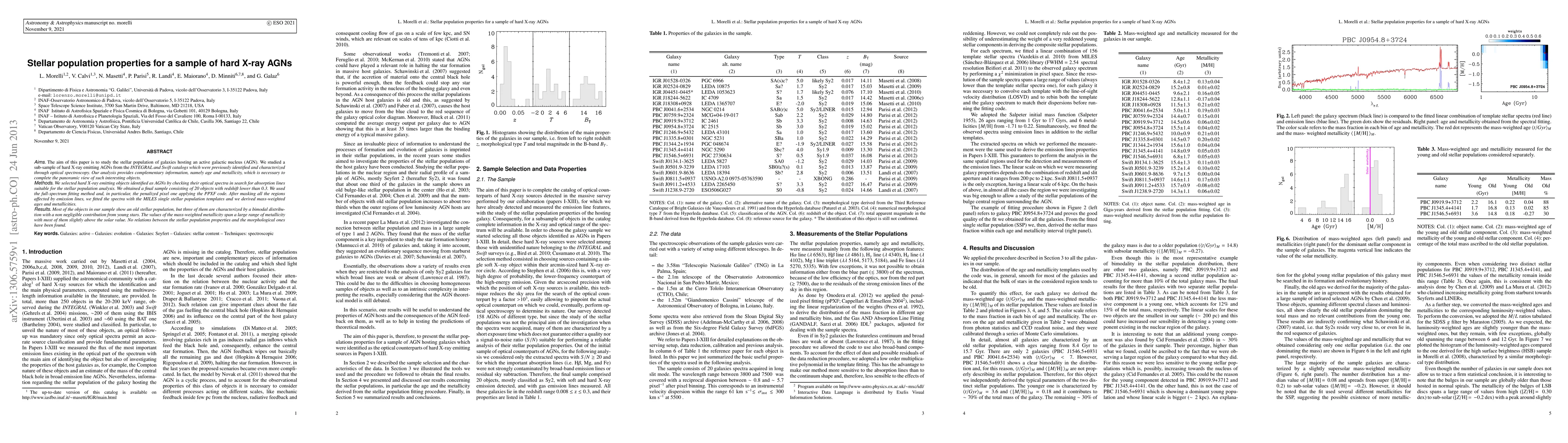 The aim of this paper is to study the stellar population of galaxies hosting an active galactic nucleus (AGN). We studied a sub-sample of hard X-ray emitting AGNs from the INTEGRAL and Swift catalogs which were previously identified and characterized through optical spectroscopy. Our analysis provides complementary information, namely age and metallicity, which is necessary to complete the panoramic view of such interesting objects. We selected hard X-ray emitting objects identified as AGNs by checking their optical spectra in search for absorption lines suitable for the stellar population analysis. We obtained a final sample consisting of 20 objects with redshift lower than 0.3. We used the full-spectrum fitting method and, in particular, the penalized pixel one applying the PPXF code. After masking all the regions affected by emission lines, we fitted the spectra with the MILES single stellar population templates and we derived mass-weighted ages and metallicities. Most of the objects in our sample show an old stellar population, but three of them are characterized by a bimodal distribution with a non negligible contribution from young stars. The values of the mass-weighted metallicity span a large range of metallicity with most of them slightly above the solar value. No relations between the stellar population properties and the morphological ones have been found.