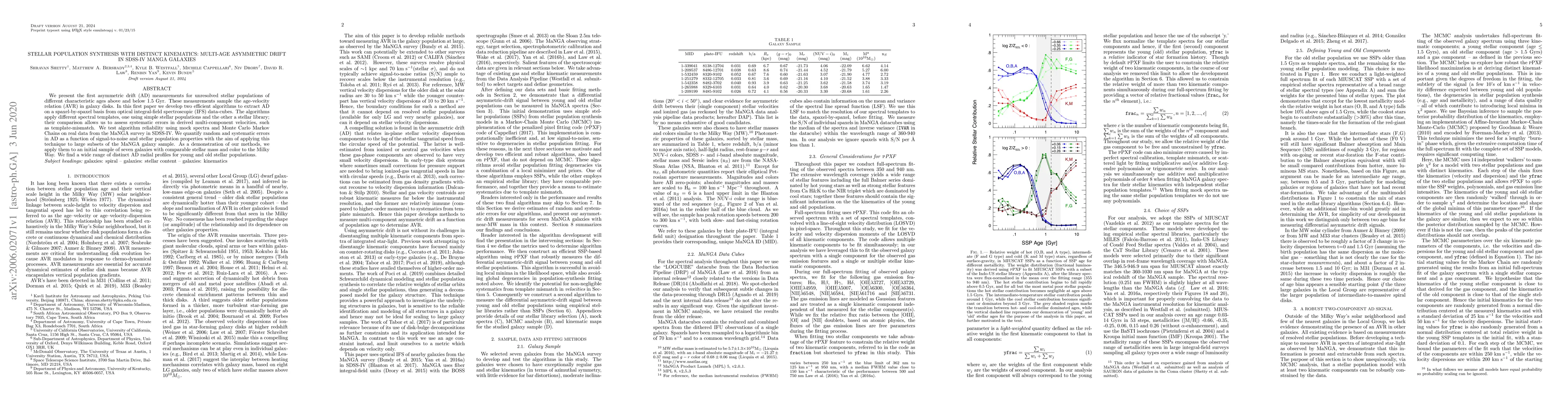 This paper introduces algorithms to measure asymmetric drift in stellar populations of different ages in SDSS-IV MaNGA galaxies, assessing systematic errors through spectral template comparisons. The study finds diverse asymmetric drift profiles in young and old stellar populations across an initial sample of seven galaxies.
