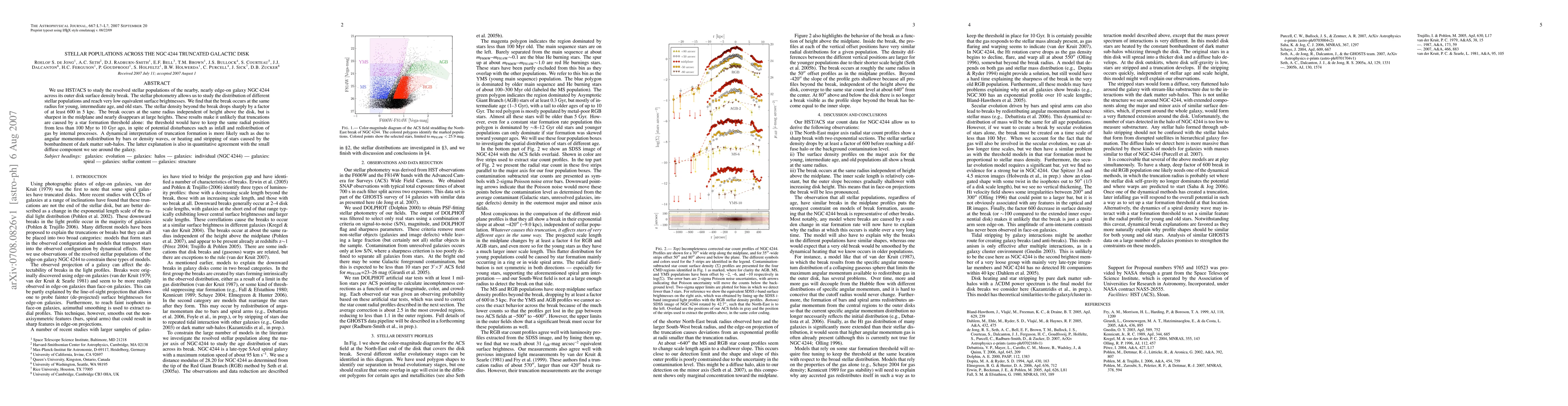The study of NGC4244's outer disk surface density break reveals a sharp drop in stellar density beyond the break, suggesting a non-star formation threshold explanation for truncation formation, with angular momentum redistribution or dark matter sub-halos being more likely causes.