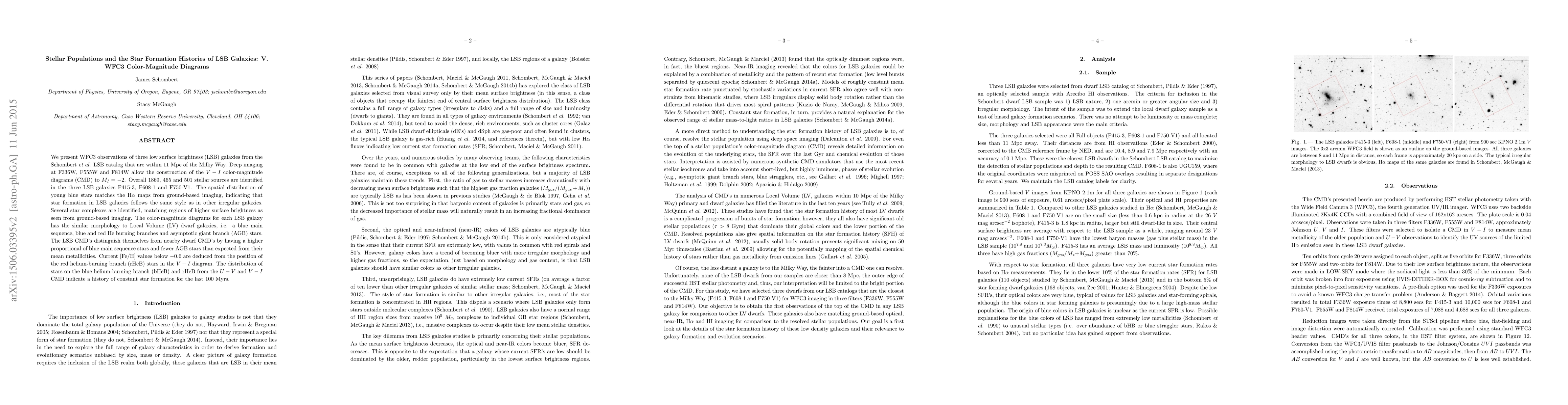 This paper uses WFC3 observations to analyze the stellar populations and star formation histories of three low surface brightness galaxies, revealing a higher proportion of young blue stars and fewer asymptotic giant branch stars compared to nearby dwarf galaxies. The star formation history shows a consistent pattern over the last 100 Myrs.