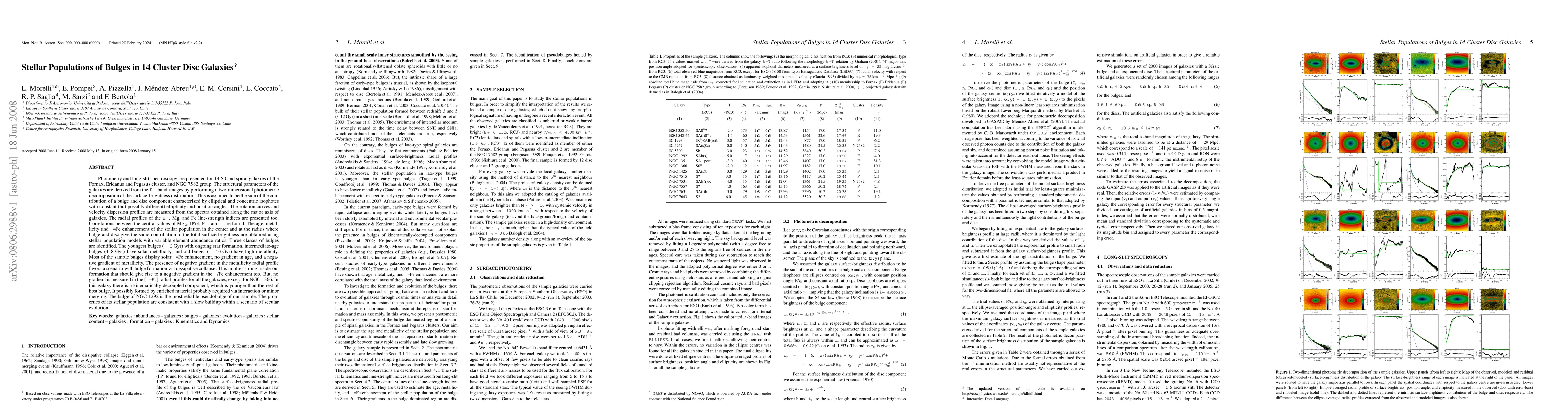 Hb, Mg, and Fe line-strength indices are presented too. Correlations between