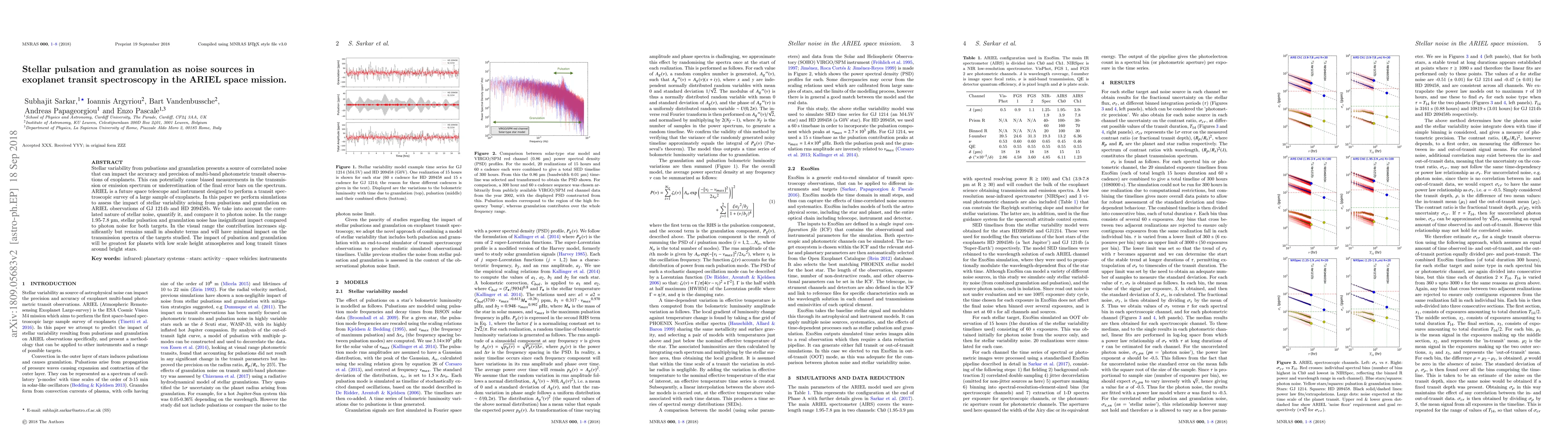 This paper assesses the impact of stellar pulsations and granulation noise on exoplanet transit spectroscopy using the ARIEL mission, finding minimal effect in the mid-infrared range but noting a greater, though still small, influence in the visual range. The noise's impact is most significant for planets with low atmospheric scale heights and long transit durations around bright stars.