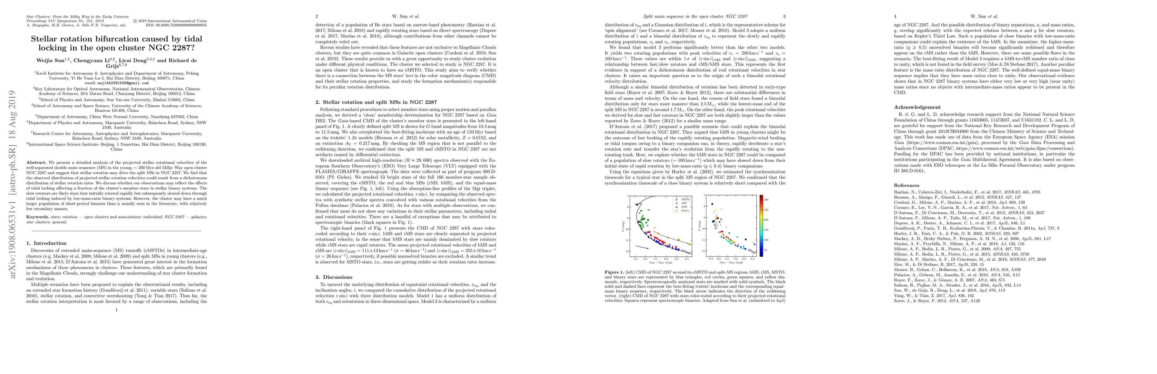 This research investigates the stellar rotation velocities in the open cluster NGC 2287, suggesting that tidal locking in binary systems may cause a bifurcation in the cluster's main sequence stars, leading to a dichotomy in rotation rates. The study posits that slow rotators are likely stars that were once fast rotators but slowed down due to tidal locking, indicating a higher prevalence of low-mass-ratio binary systems than previously reported.