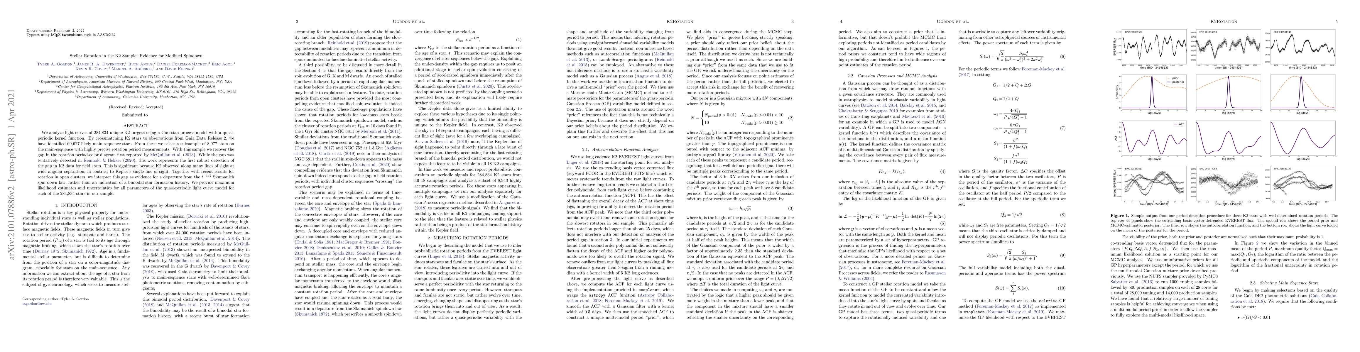 We analyze light curves of 284,834 unique K2 targets using a Gaussian process model with a quasi-periodic kernel function. By crossmatching K2 stars to observations from Gaia Data Release 2, we have identified 69,627 likely main-sequence stars. From these we select a subsample of 8,977 stars on the main-sequence with highly precise rotation period measurements. With this sample we recover the gap in the rotation period-color diagram first reported by \cite{McQuillan2013}. While the gap was tentatively detected in \cite{Reinhold2020}, this work represents the first robust detection of the gap in K2 data for field stars. This is significant because K2 observed along many lines of sight at wide angular separation, in contrast to Kepler's single line of sight. Together with recent results for rotation in open clusters, we interpret this gap as evidence for a departure from the $t^{-1/2}$ Skumanich spin down law, rather than an indication of a bimodal star formation history. We provide maximum likelihood estimates and uncertainties for all parameters of the quasi-periodic light curve model for each of the 284,834 stars in our sample.