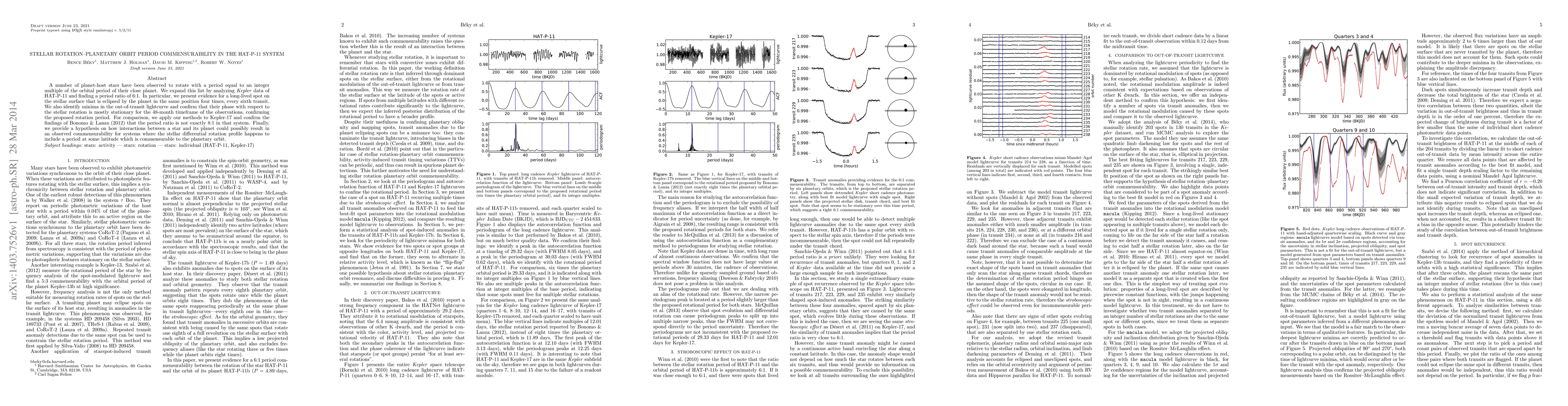 This paper reports a 6:1 commensurability between the rotation period of the star HAT-P-11 and its close-orbit planet, evidenced by a long-lived stellar spot and stable out-of-transit lightcurve minima. The study also hypothesizes a mechanism for such commensurability through stellar differential rotation.