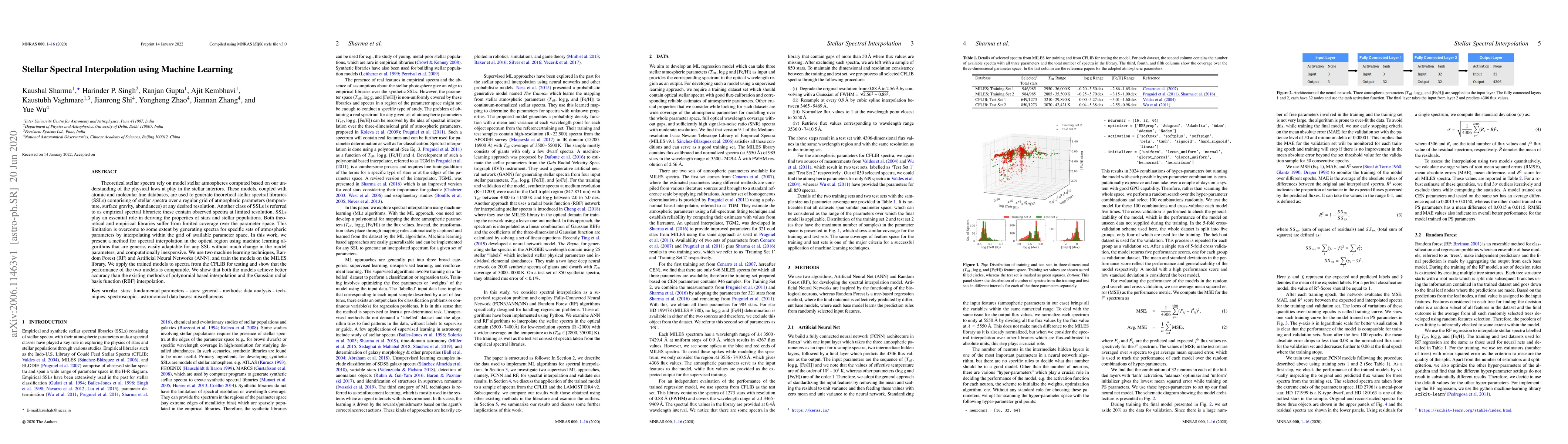 This paper proposes machine learning methods, specifically Random Forest and Artificial Neural Networks, for interpolating stellar spectra in the optical region, demonstrating their effectiveness over traditional polynomial and Gaussian RBF interpolation techniques. The models are trained on the MILES library and tested on CFLIB spectra, showing comparable performance and higher accuracy.