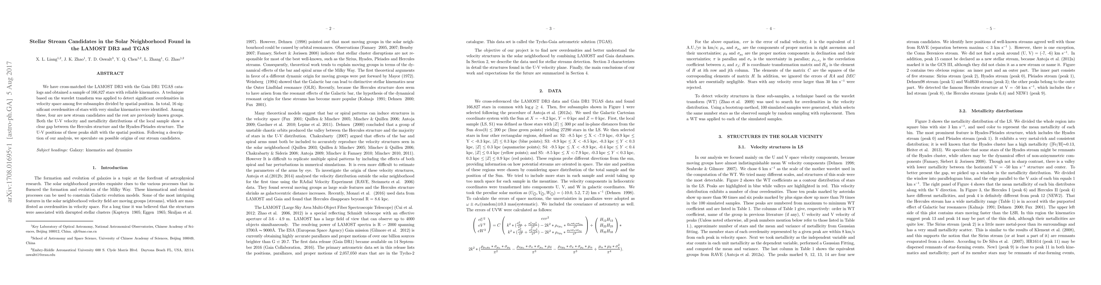 We have cross-matched the LAMOST DR3 with the Gaia DR1 TGAS catalogs and obtained a sample of 166,827 stars with reliable kinematics. A technique based on the wavelet transform was applied to detect significant overdensities in velocity space among five subsamples divided by spatial position. In total, 16 significant overdensities of stars with very similar kinematics were identified. Among these, four are new stream candidates and the rest are previously known groups. Both the U-V velocity and metallicity distributions of the local sample show a clear gap between the Hercules structure and the Hyades-Pleiades structure. The U-V positions of these peaks shift with the spatial position. Following a description of our analysis, we speculate on possible origins of our stream candidates.