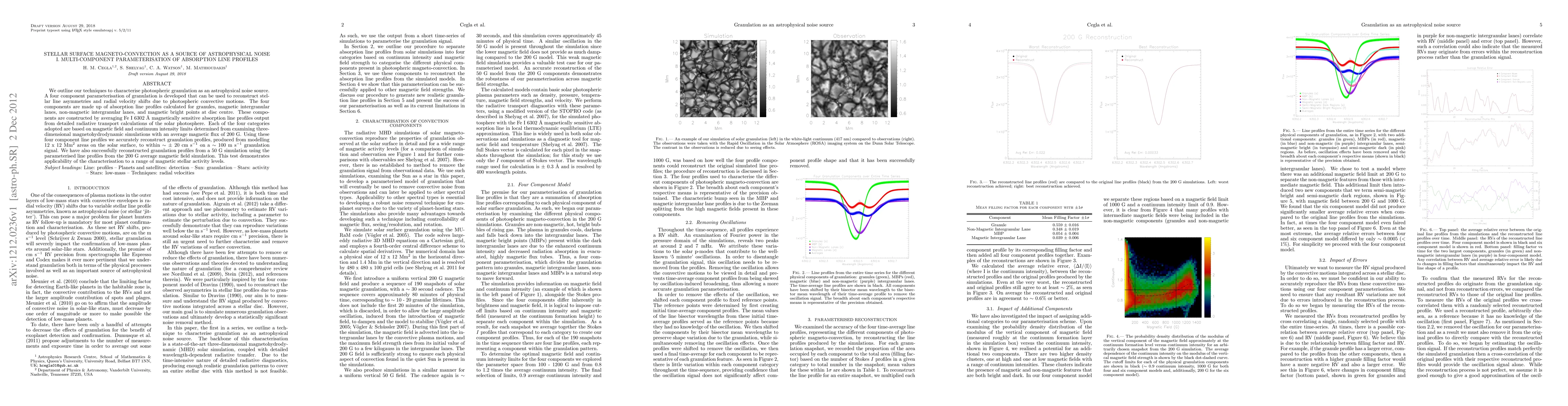 This paper develops a four-component parameterisation to characterise photospheric granulation as an astrophysical noise source, using Fe I $6302 \mathrm{\AA}$ line profiles from detailed solar simulations. The method accurately reconstructs granulation profiles and demonstrates applicability across different magnetic field strengths.