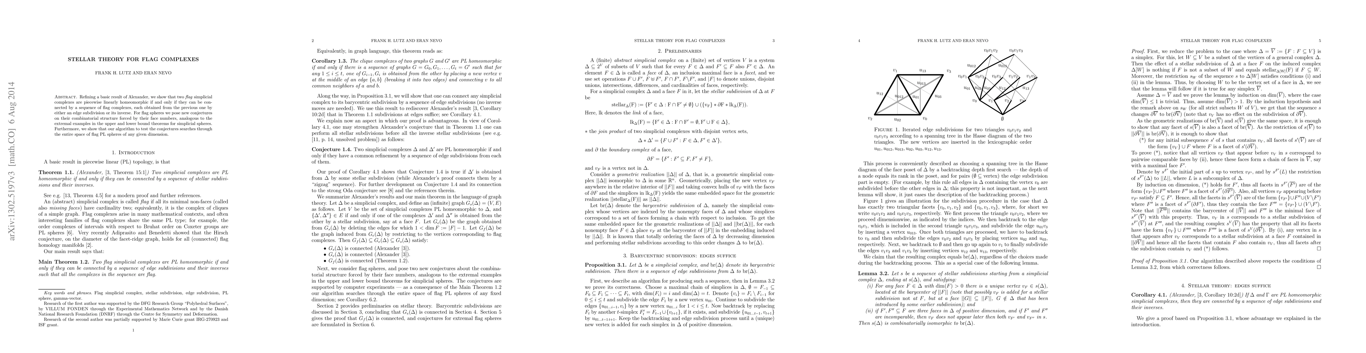 This paper refines Alexander's result on flag simplicial complexes, proving that two are piecewise linearly homeomorphic if connected via a series of edge subdivisions or their inverses. It also proposes new conjectures on the combinatorial structure of flag spheres based on their face numbers and presents an algorithm to test these conjectures across all flag PL spheres of any dimension.