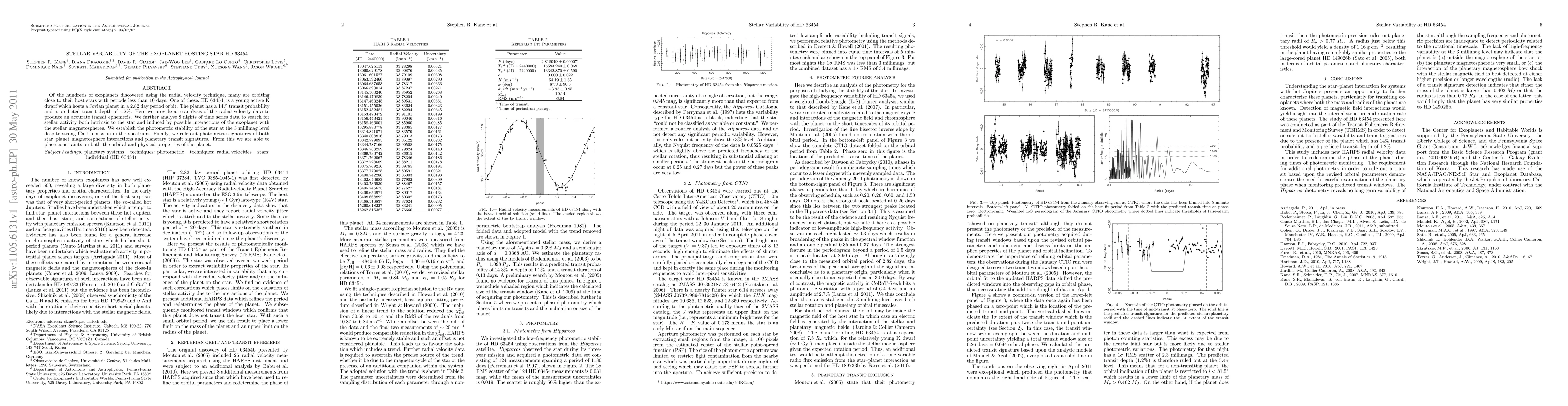 Of the hundreds of exoplanets discovered using the radial velocity technique, many are orbiting close to their host stars with periods less than 10 days. One of these, HD 63454, is a young active K dwarf which hosts a Jovian planet in a 2.82 day period orbit. The planet has a 14% transit probability and a predicted transit depth of 1.2%. Here we provide a re-analysis of the radial velocity data to produce an accurate transit ephemeris. We further analyse 8 nights of time series data to search for stellar activity both intrinsic to the star and induced by possible interactions of the exoplanet with the stellar magnetospheres. We establish the photometric stability of the star at the 3 millimag level despite strong Ca II emission in the spectrum. Finally, we rule out photometric signatures of both star-planet magnetosphere interactions and planetary transit signatures. From this we are able to place constraints on both the orbital and physical properties of the planet.
