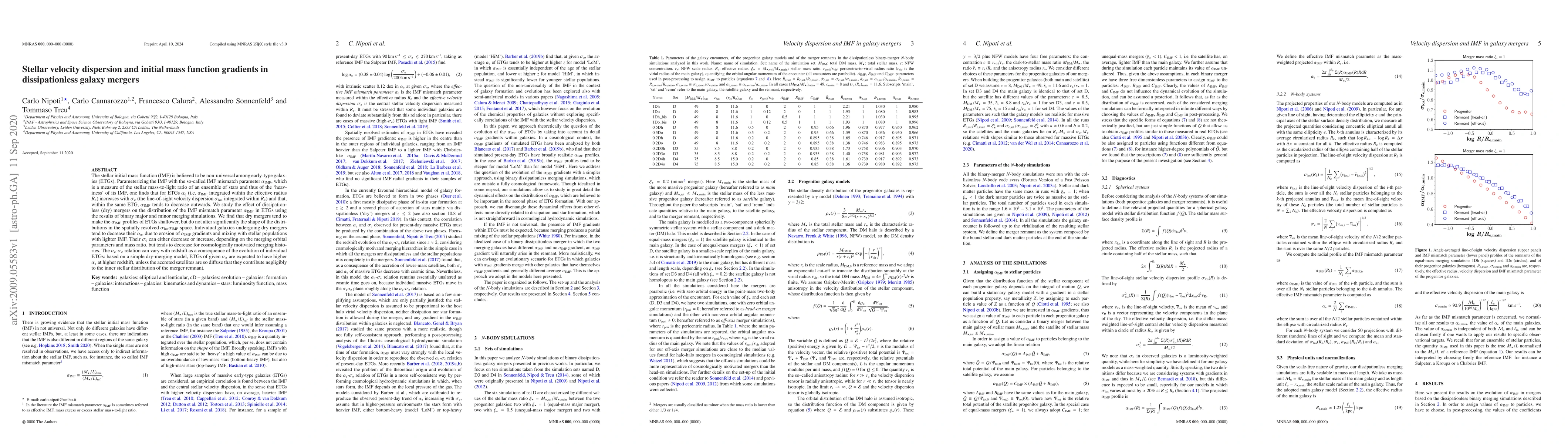 The stellar initial mass function (IMF) is believed to be non-universal among early-type galaxies (ETGs). Parameterizing the IMF with the so-called IMF mismatch parameter $\alpha_{\rm IMF}$, which is a measure of the stellar mass-to-light ratio of an ensemble of stars and thus of the 'heaviness' of its IMF, one finds that for ETGs $\alpha_{\rm e}$ (i.e. $\alpha_{\rm IMF}$ integrated within the effective radius $R_{\rm e}$) increases with $\sigma_{\rm e}$ (the line-of-sight velocity dispersion $\sigma_{\rm los}$ integrated within $R_{\rm e}$) and that, within the same ETG, $\alpha_{\rm IMF}$ tends to decrease outwards. We study the effect of dissipationless (dry) mergers on the distribution of the IMF mismatch parameter $\alpha_{\rm IMF}$ in ETGs using the results of binary major and minor merging simulations. We find that dry mergers tend to make the $\alpha_{\rm IMF}$ profiles of ETGs shallower, but do not alter significantly the shape of the distributions in the spatially resolved $\sigma_{\rm los}\alpha_{\rm IMF}$ space. Individual galaxies undergoing dry mergers tend to decrease their $\alpha_{\rm e}$, due to erosion of $\alpha_{\rm IMF}$ gradients and mixing with stellar populations with lighter IMF. Their $\sigma_{\rm e}$ can either decrease or increase, depending on the merging orbital parameters and mass ratio, but tends to decrease for cosmologically motivated merging histories. The $\alpha_{\rm e}$-$\sigma_{\rm e}$ relation can vary with redshift as a consequence of the evolution of individual ETGs: based on a simple dry-merging model, ETGs of given $\sigma_{\rm e}$ are expected to have higher $\alpha_{\rm e}$ at higher redshift, unless the accreted satellites are so diffuse that they contribute negligibly to the inner stellar distribution of the merger remnant.