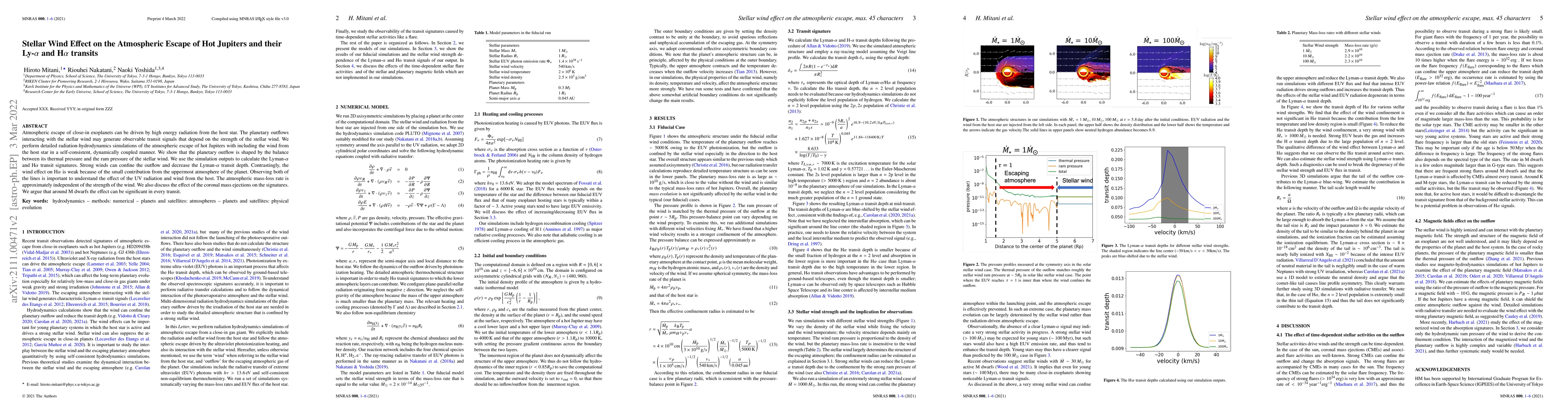 This paper investigates how stellar winds influence the atmospheric escape and transit signals of hot Jupiters, using detailed radiation-hydrodynamics simulations. It finds that strong stellar winds can confine planetary outflows, reducing the Lyman-$\alpha$ transit depth, while having a minor effect on H$\alpha$ due to the planet's upper atmosphere.