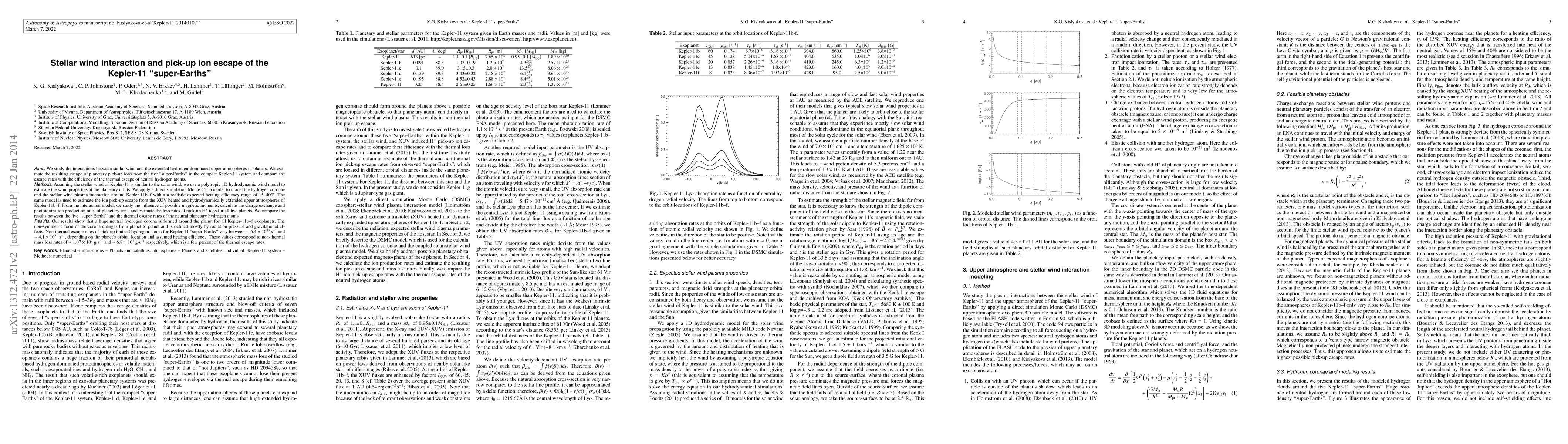 This study investigates the interaction between stellar wind and the hydrogen-dominated atmospheres of Kepler-11's five "super-Earths," estimating the escape rates of pick-up ions and comparing them to thermal escape rates of neutral hydrogen. The results show significant non-thermal mass loss, with rates varying from 1.07e7 g/s to 6.8e7 g/s, representing a small fraction of the thermal escape rates.