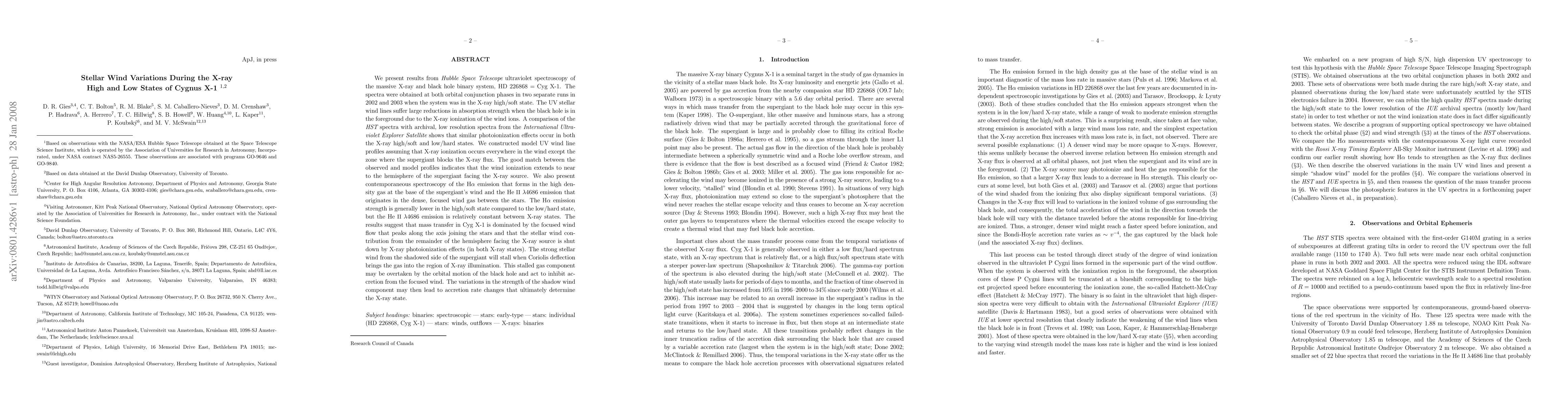We present results from Hubble Space Telescope UV spectroscopy of the massive X-ray binary system, HD226868 = Cyg X-1. The spectra were obtained at both orbital conjunction phases in two separate runs in 2002 and 2003 when the system was in the X-ray high/soft state. The stellar wind lines suffer large reductions in strength when the black hole is in the foreground due to the X-ray ionization of the wind ions. A comparison of HST and archival IUE spectra shows that similar photoionization effects occur in both the X-ray states. We constructed model UV wind line profiles assuming that X-ray ionization occurs everywhere in the wind except the zone where the supergiant blocks the X-ray flux. The good match between the observed and model profiles indicates that the wind ionization extends to near to the hemisphere of the supergiant facing the X-ray source. The H-alpha emission strength is generally lower in the high/soft state compared to the low/hard state, but the He II 4686 emission is relatively constant between states. The results suggest that mass transfer in Cyg X-1 is dominated by a focused wind flow that peaks along the axis joining the stars and that the stellar wind contribution is shut down by X-ray photoionization effects. The strong stellar wind from the shadowed side of the supergiant will stall when Coriolis deflection brings the gas into the region of X-ray illumination. This stalled gas component may be overtaken by the orbital motion of the black hole and act to inhibit accretion from the focused wind. The variations in the strength of the shadow wind component may then lead to accretion rate changes that ultimately determine the X-ray state.