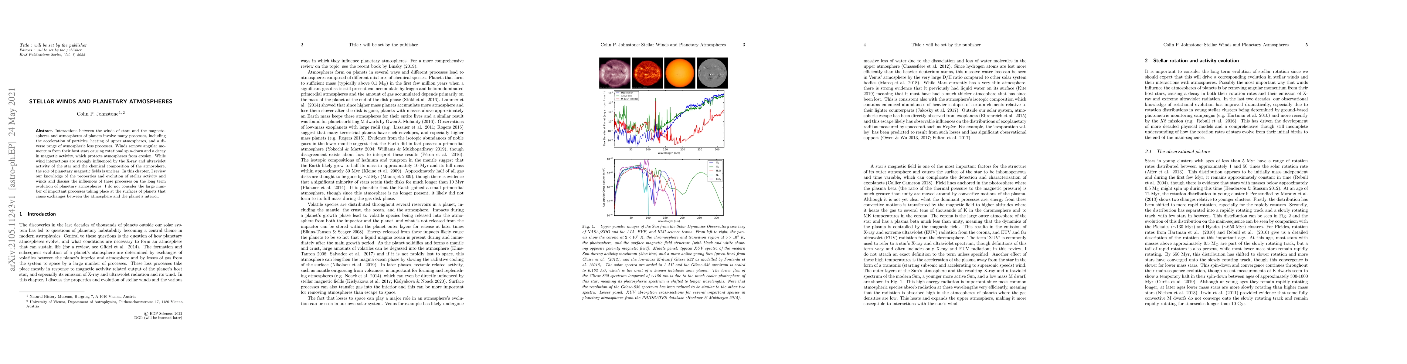 Interactions between the winds of stars and the magnetospheres and atmospheres of planets involve many processes, including the acceleration of particles, heating of upper atmospheres, and a diverse range of atmospheric loss processes. Winds remove angular momentum from their host stars causing rotational spin-down and a decay in magnetic activity, which protects atmospheres from erosion. While wind interactions are strongly influenced by the X-ray and ultraviolet activity of the star and the chemical composition of the atmosphere, the role of planetary magnetic fields is unclear. In this chapter, I review our knowledge of the properties and evolution of stellar activity and winds and discuss the influences of these processes on the long term evolution of planetary atmospheres. I do not consider the large number of important processes taking place at the surfaces of planets that cause exchanges between the atmosphere and the planet's interior.