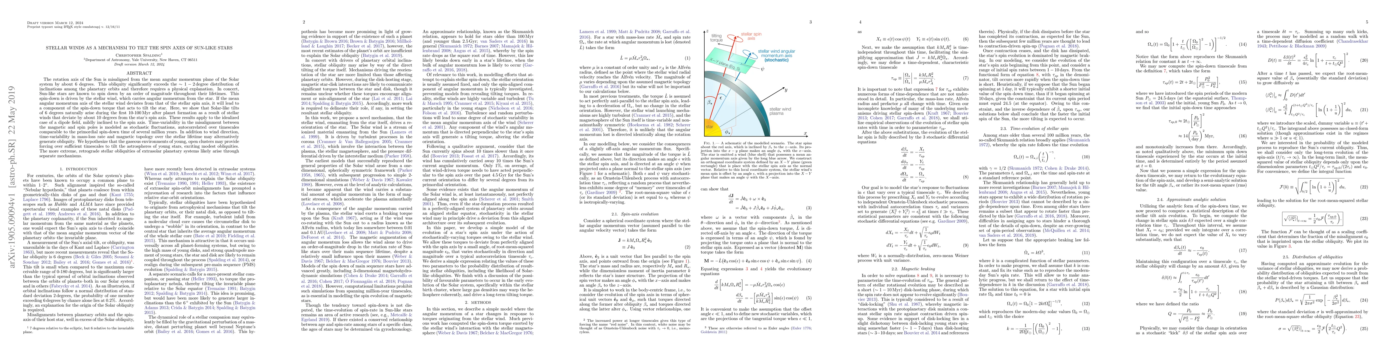 This paper investigates how stellar winds can tilt the spin axes of Sun-like stars, explaining the Sun's 6-degree obliquity. It proposes that misalignments between stellar wind angular momentum and spin axis, driven by time-variable magnetic fields, can naturally produce such tilts within the first 10-100 Myr after planet formation.