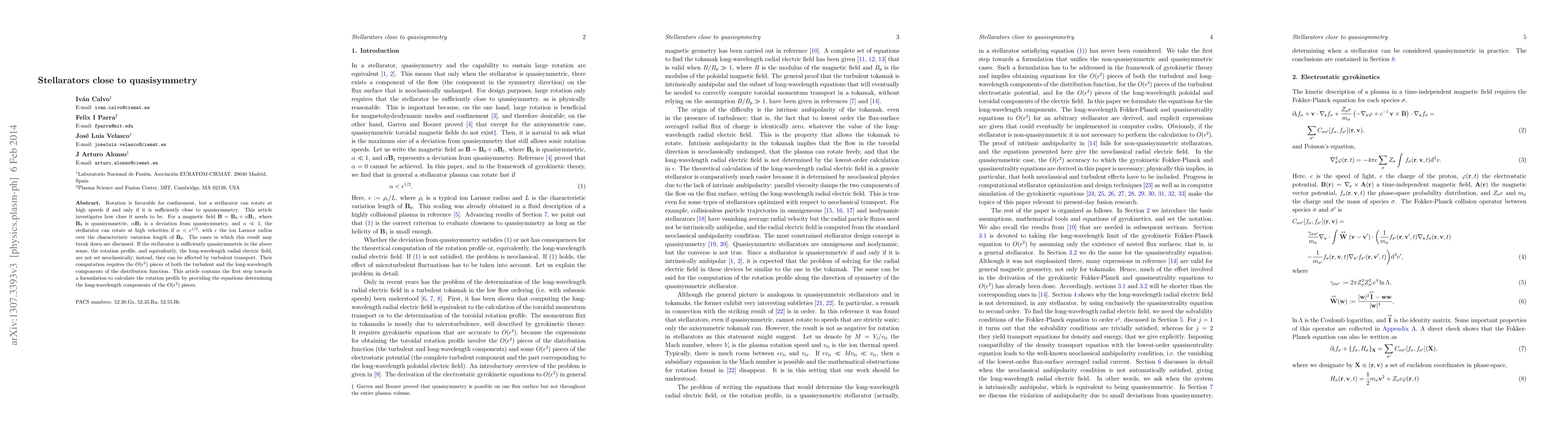 Rotation is favorable for confinement, but a stellarator can rotate at high speeds if and only if it is sufficiently close to quasisymmetry. This article investigates how close it needs to be. For a magnetic field $\mathbf{B} = \mathbf{B}_0 + \alpha \mathbf{B}_1$, where $\mathbf{B}_0$ is quasisymmetric, $\alpha\mathbf{B}_1$ is a deviation from quasisymmetry, and $\alpha\ll 1$, the stellarator can rotate at high velocities if $\alpha < \epsilon^{1/2}$, with $\epsilon$ the ion Larmor radius over the characteristic variation length of $\mathbf{B}_0$. The cases in which this result may break down are discussed. If the stellarator is sufficiently quasisymmetric in the above sense, the rotation profile, and equivalently, the long-wavelength radial electric field, are not set neoclassically; instead, they can be affected by turbulent transport. Their computation requires the $O(\epsilon^2)$ pieces of both the turbulent and the long-wavelength components of the distribution function. This article contains the first step towards a formulation to calculate the rotation profile by providing the equations determining the long-wavelength components of the $O(\epsilon^2)$ pieces.