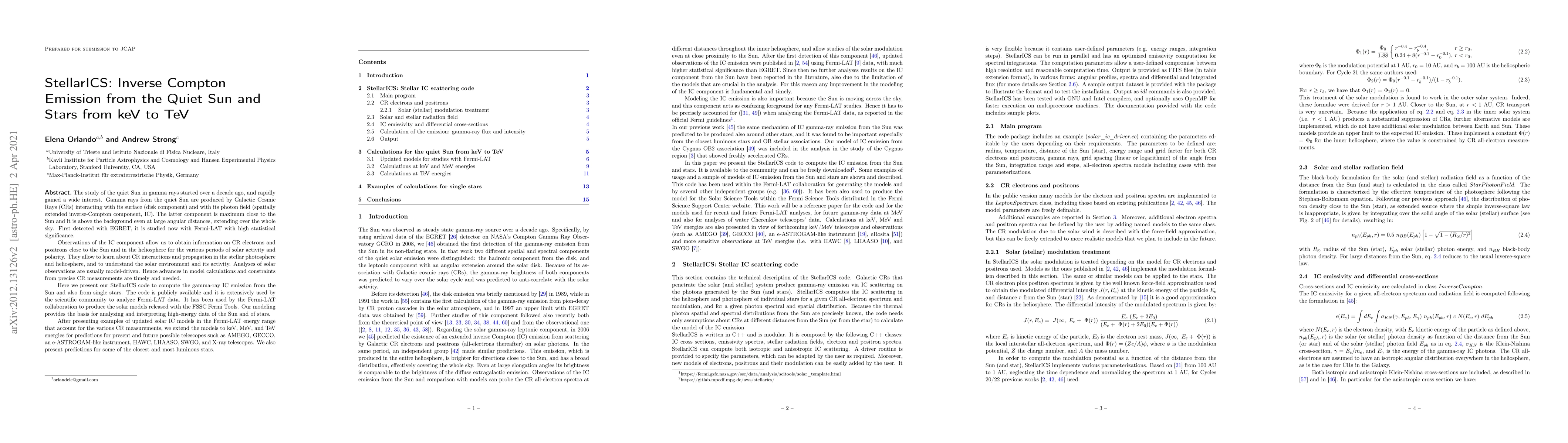 The study of the quiet Sun in gamma rays started over a decade ago, and rapidly gained a wide interest. Gamma rays from the quiet Sun are produced by Cosmic Rays (CRs) interacting with its surface (disk component) and with its photon field (spatially extended inverse-Compton component, IC). The latter component is maximum close to the Sun and it is above the background even at large angular distances, extending over the whole sky. First detected with EGRET, it is studied now with Fermi-LAT with high statistical significance. Observations of the IC component allow us to obtain information on CR electrons and positrons close to the Sun and in the heliosphere for the various periods of solar activity and polarity. They allow to learn about CR interactions and propagation close to stars, in the heliosphere and on the solar surface, and to understand the Sun itself, its environment, and its activity. Analyses of solar observations are usually model-driven. Hence advances in model calculations and constraints from precise CR measurements are timely and needed. Here we present our StellarICS code to compute the gamma-ray IC emission from the Sun and also from single stars. The code is publicly available and it is extensively used by the scientific community to analyze Fermi-LAT data. It has been used by the Fermi-LAT collaboration to produce the solar models released with the FSSC Fermi Tools. Our modeling provides the basis for analyzing and interpreting high-energy data of the Sun and of stars. After presenting examples of updated solar IC models in the Fermi-LAT energy range that account for the various CR measurements, we extend the models to keV, MeV, and TeV energies for predictions for future possible telescopes such as AMEGO, GECCO, e-ASTROGAM, HAWC, LHAASO, SWGO, and present X-ray telescopes. We also present predictions for some of the closest and most luminous stars.