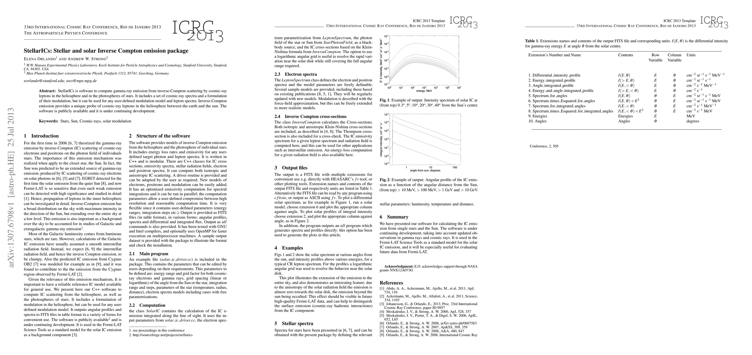 StellarICs is software to compute gamma-ray emission from inverse-Compton scattering by cosmic-ray leptons in the heliosphere and in the photospheres of stars. It includes a set of cosmic-ray spectra and a formulation of their modulation, but it can be used for any user-defined modulation model and lepton spectra. Inverse-Compton emission provides a unique probe of cosmic-ray leptons in the heliosphere between the earth and the sun. The software is publicly available and it is under continuing development.
